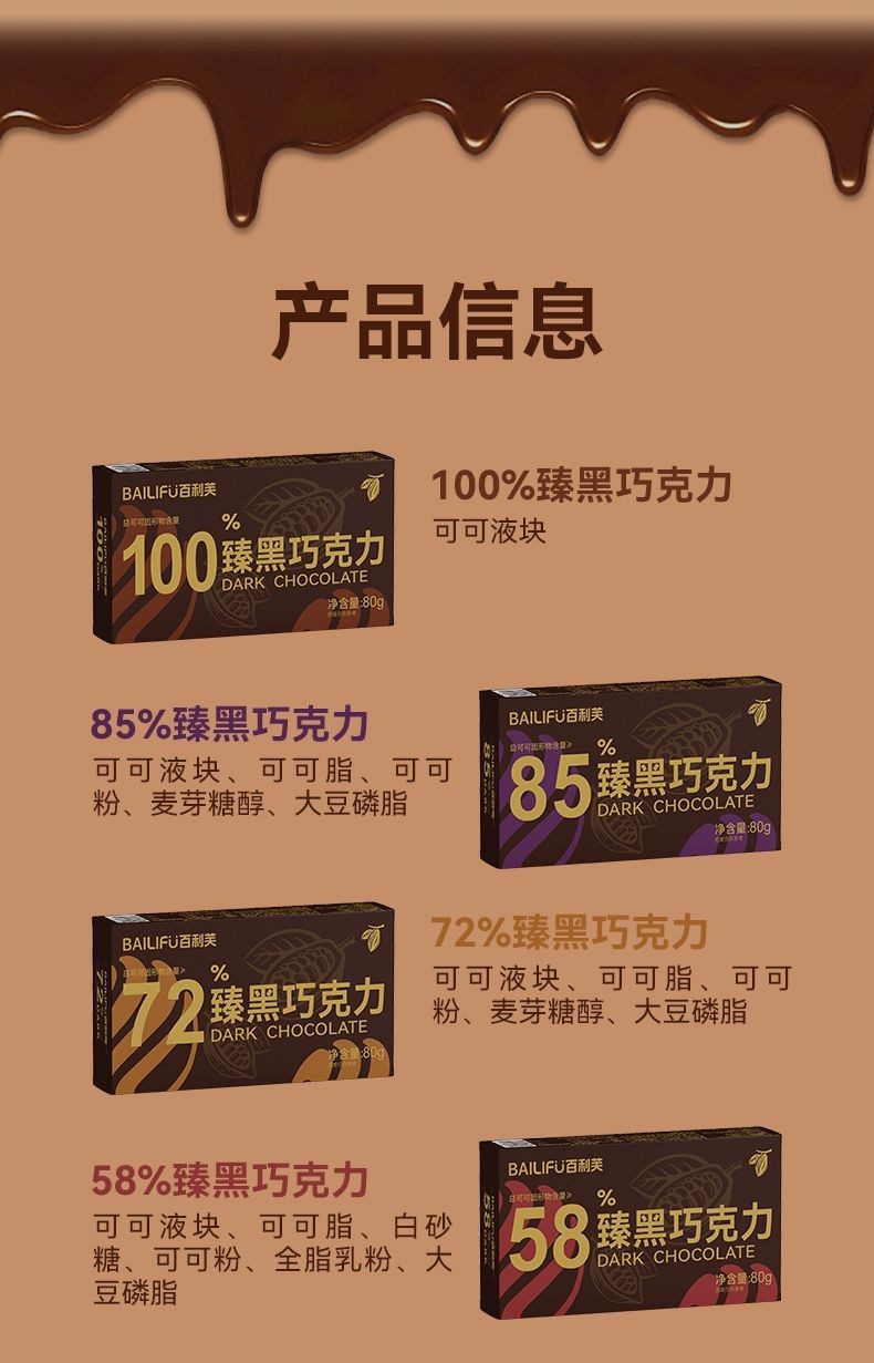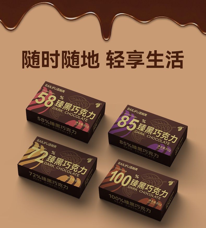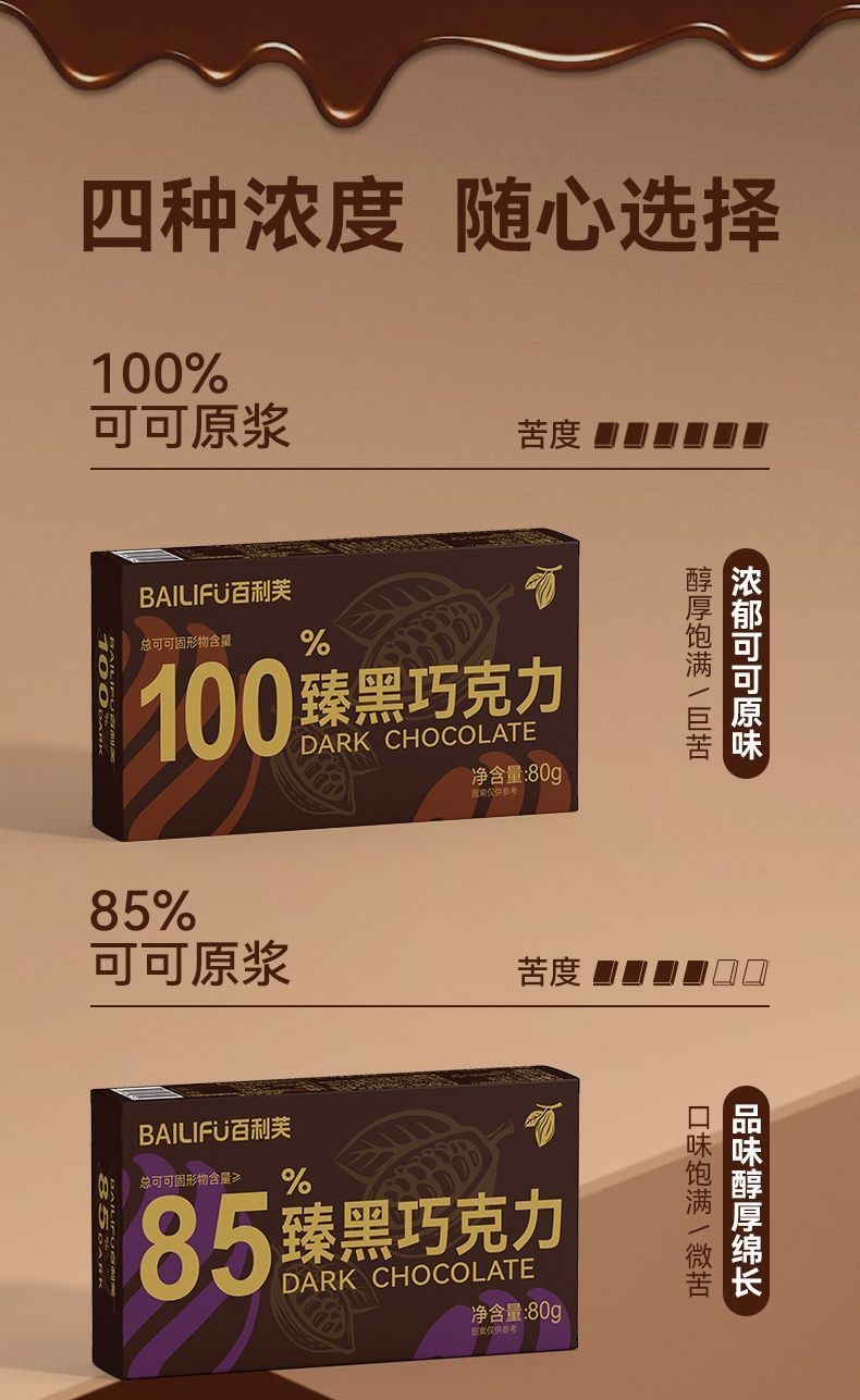 心心相印 百利芙黑巧克力純可可脂獨立包裝網紅健身盒裝解饞休閒送女友零食