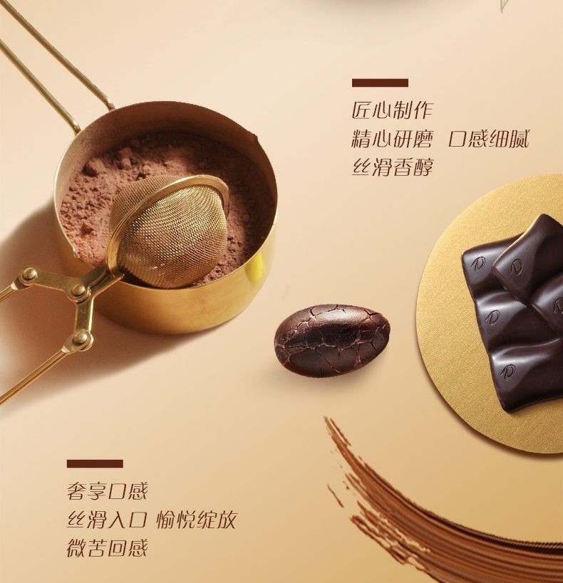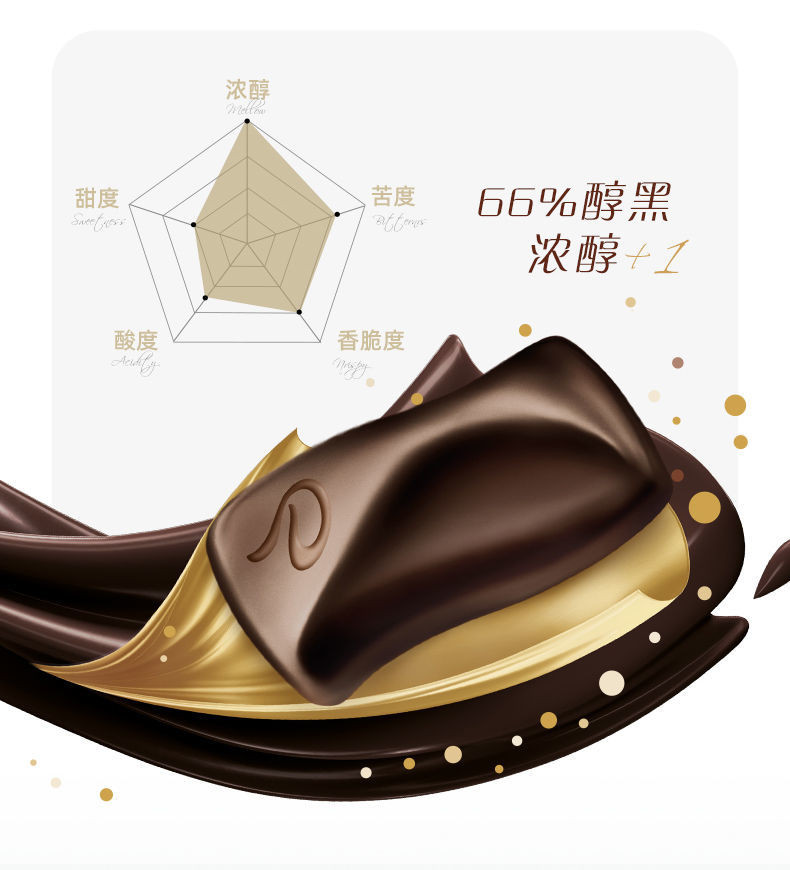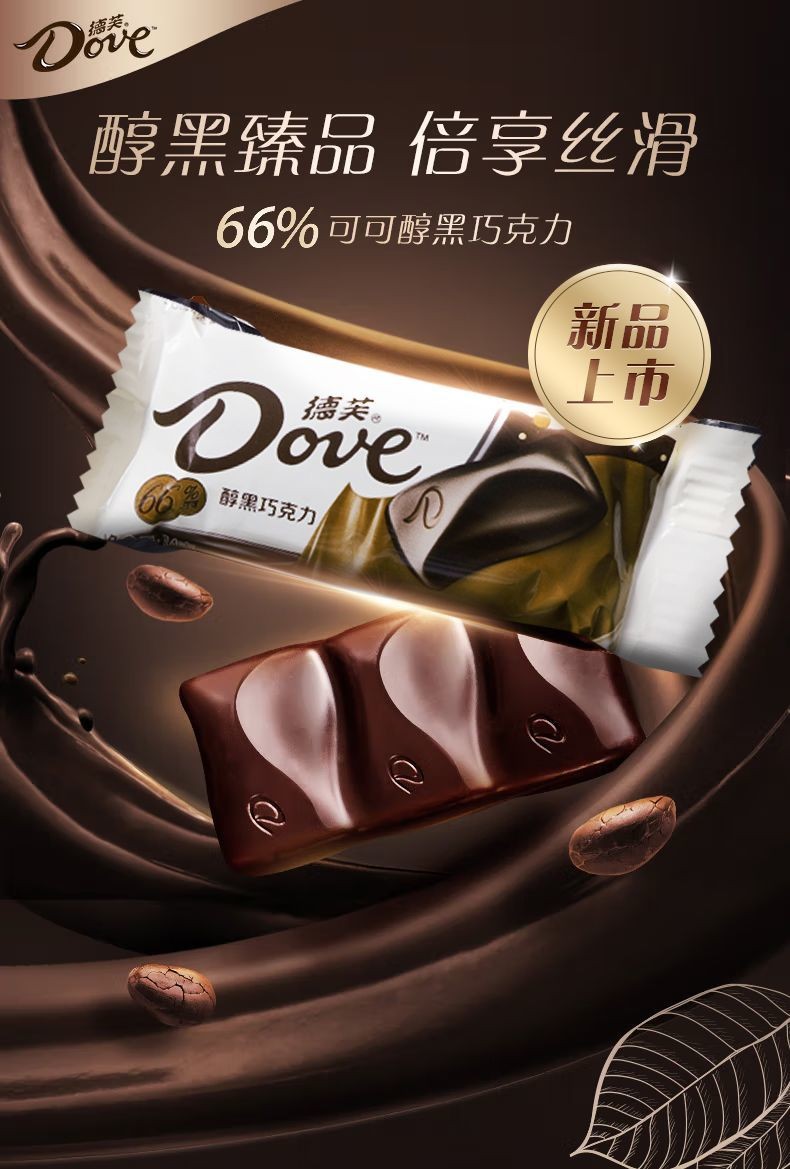 心心相印 德芙醇黑巧克力排塊224g盒裝66%純可可脂黑巧兒童休閒小零食囤貨