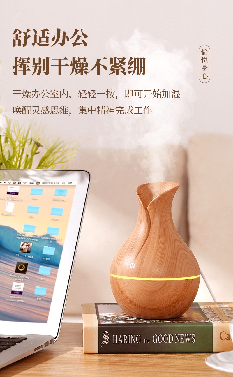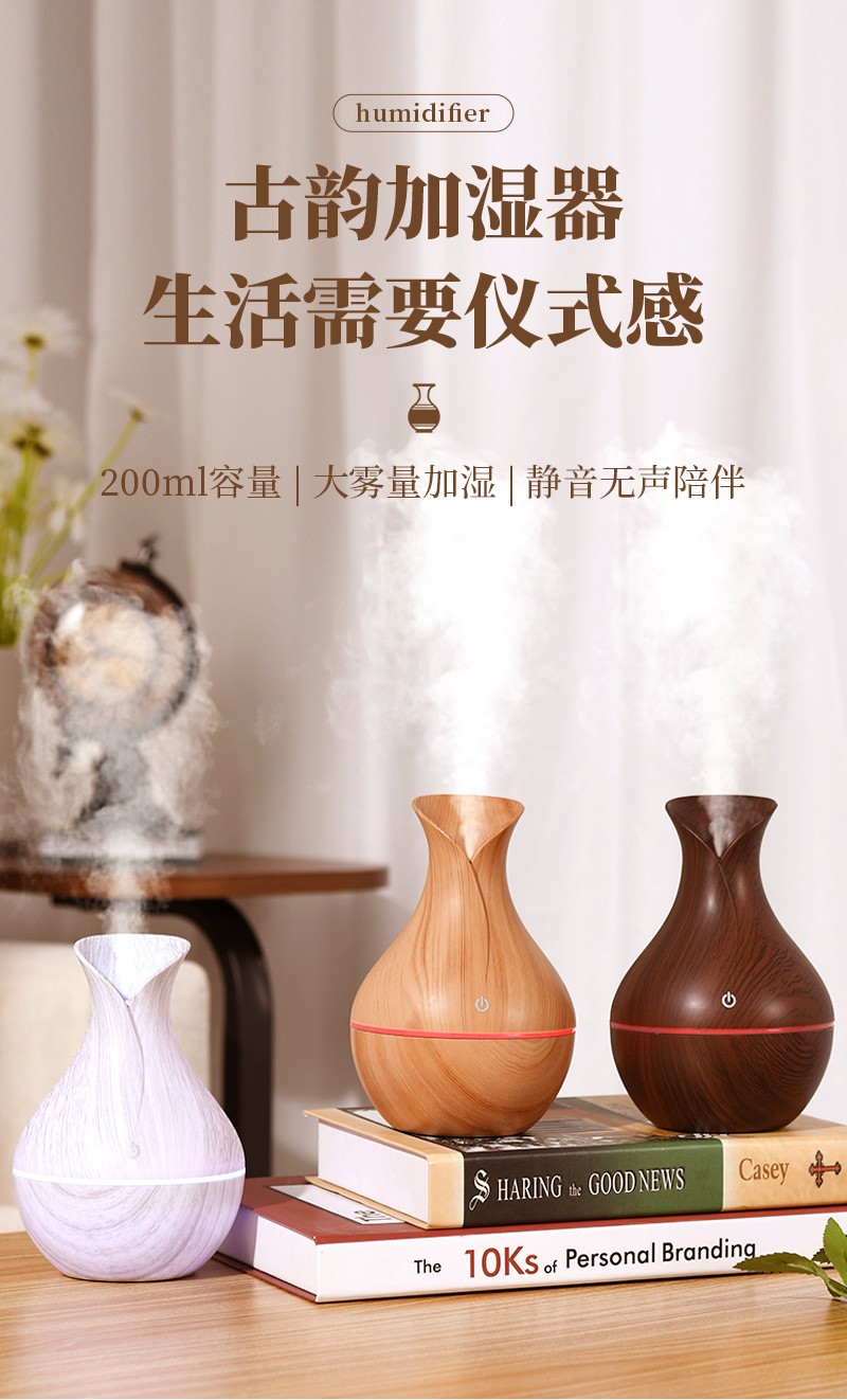 白色木紋水氧機 木紋質感 香氛 薰香 加濕器 水溶性精油 香芬機 芳香 水氧機 淨化空氣 七彩燈光 大霧量加濕器
