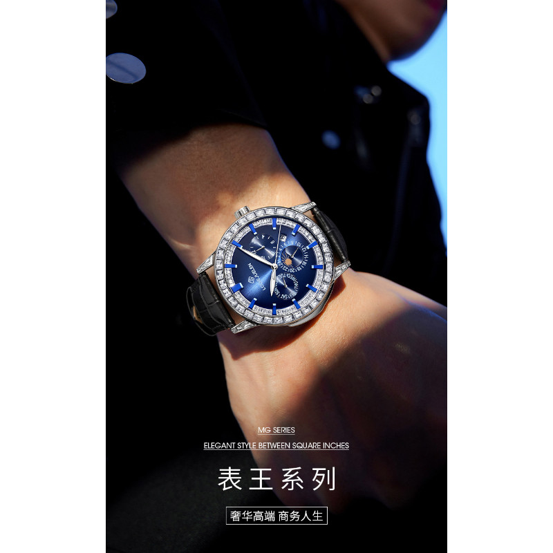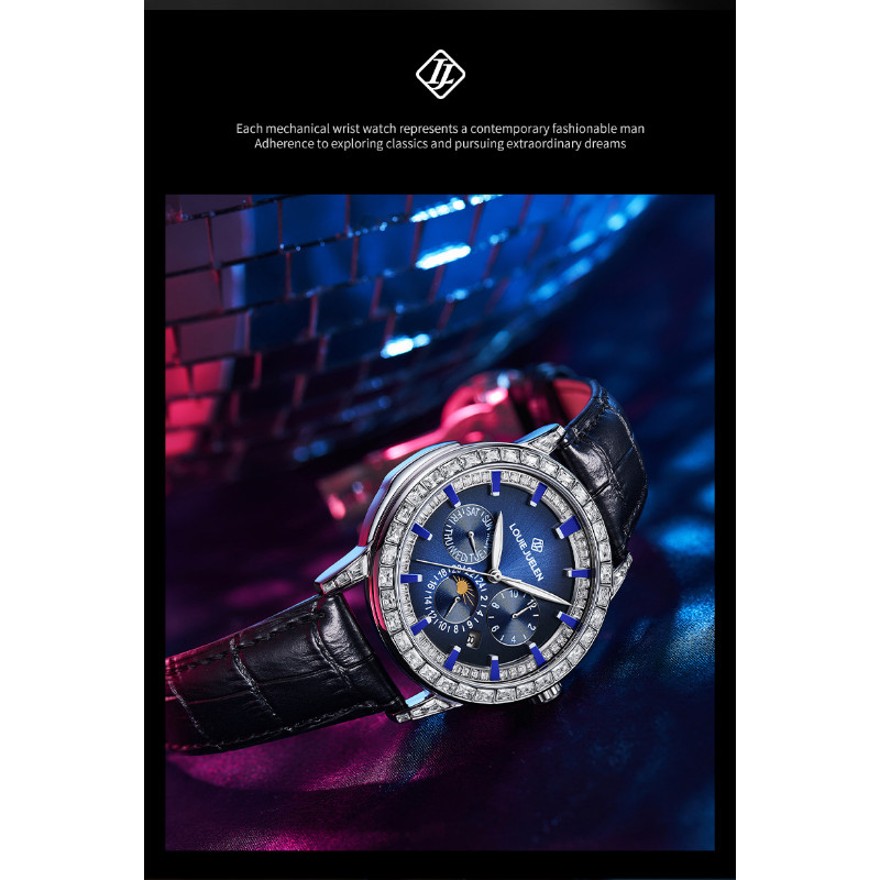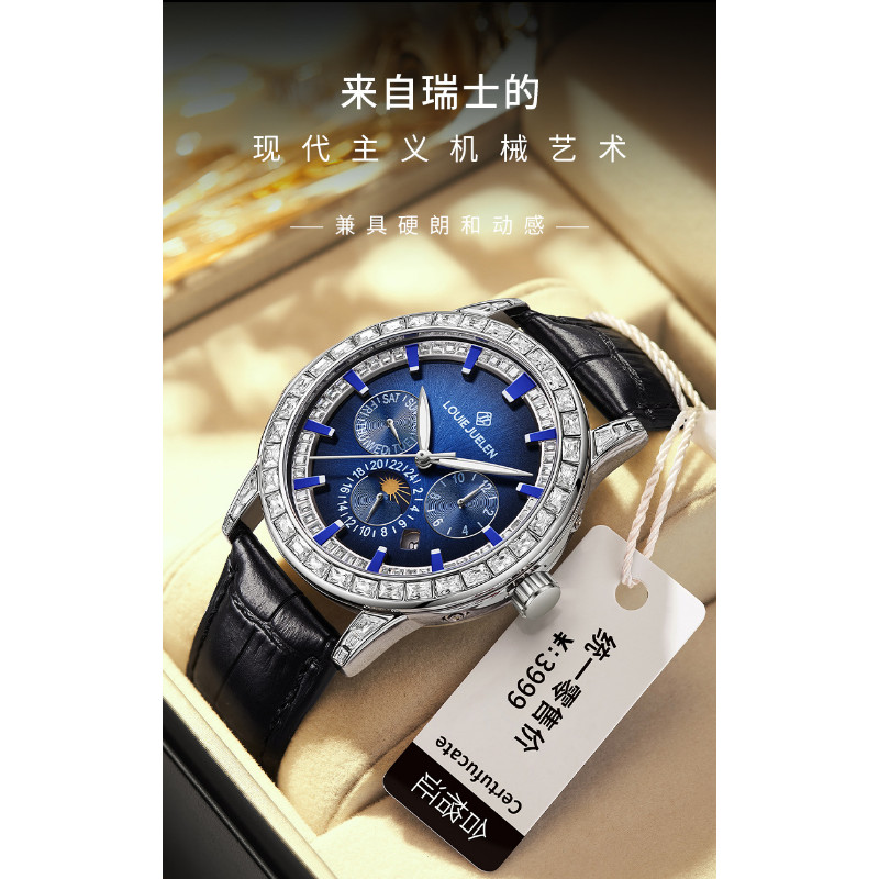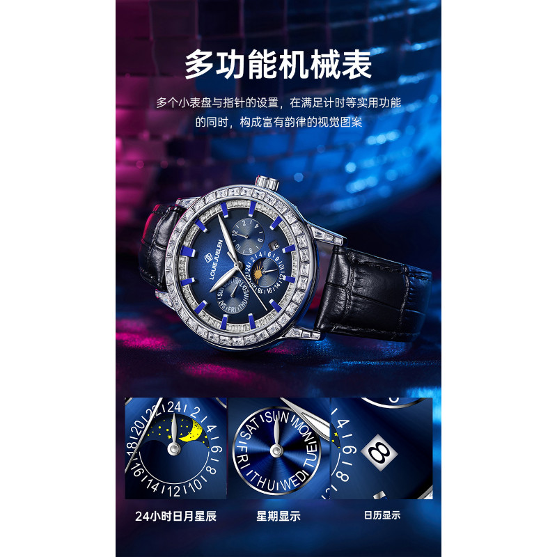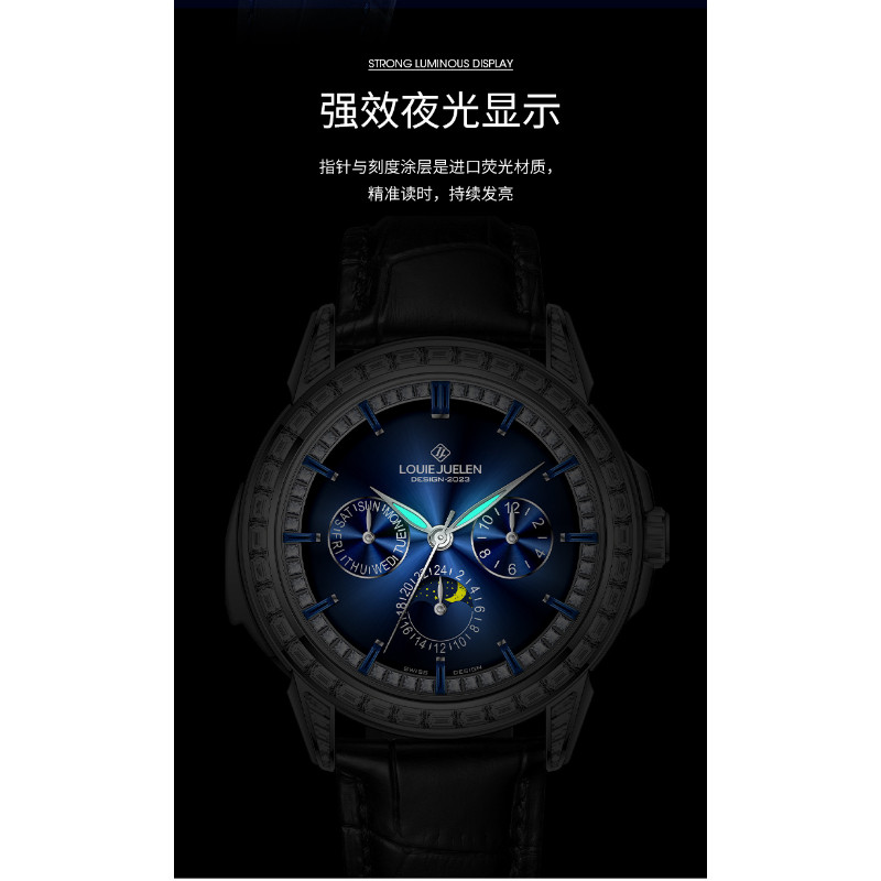 路易爵倫表王系列時尚男士機械表防水夜光真皮錶帶腕錶批發