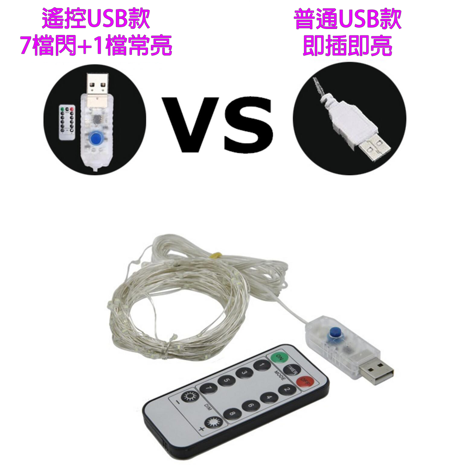 純USB款沒有遙控比較便宜,但是不能更改閃爍模式!