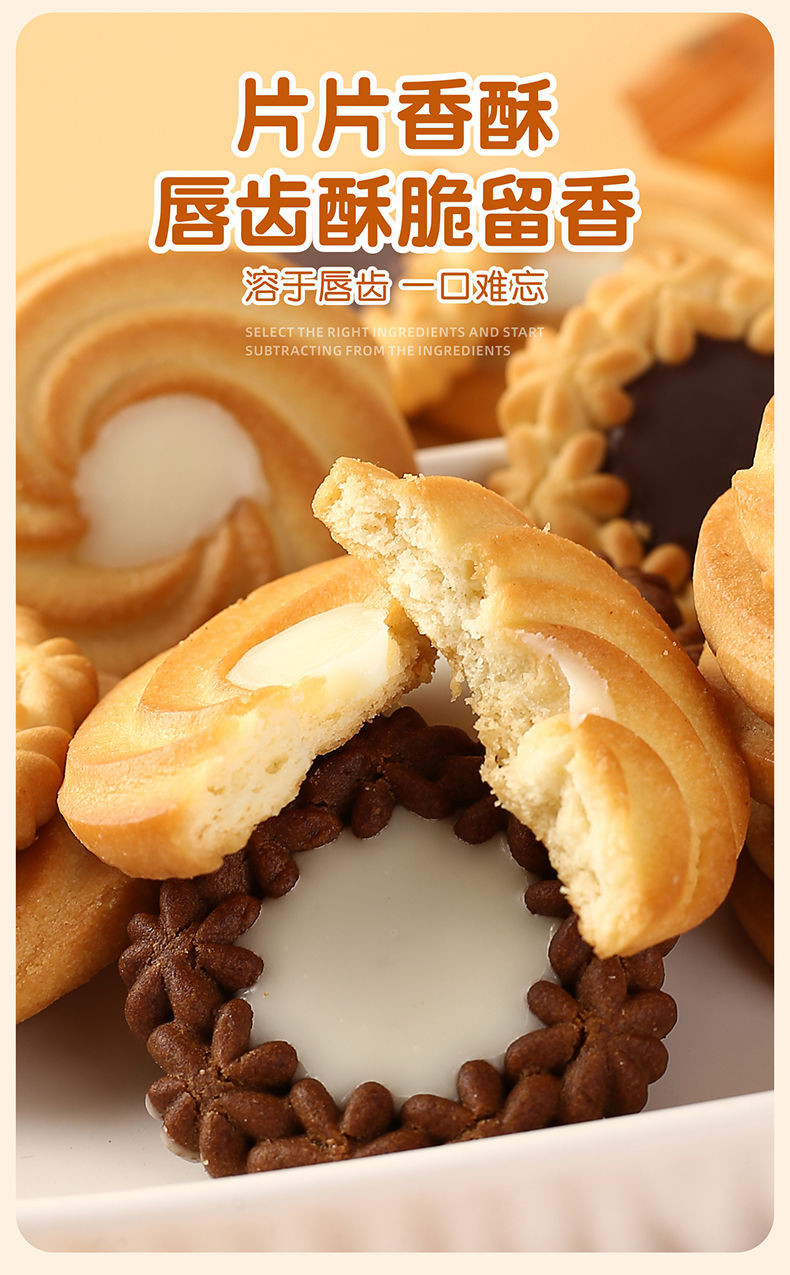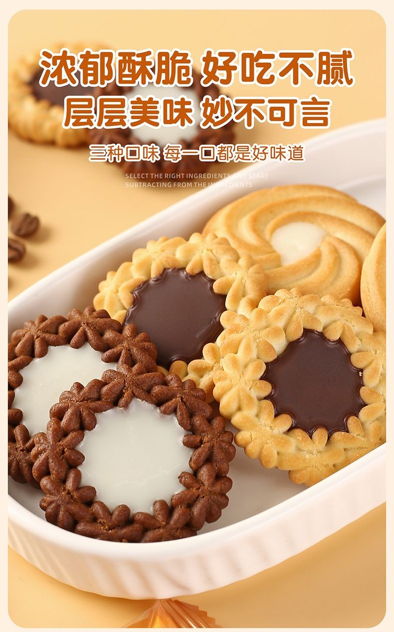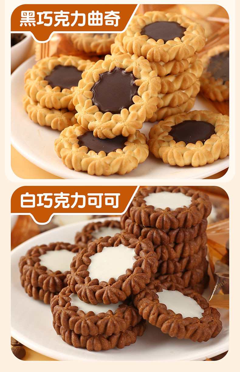 心心相印 黑白巧克力曲奇餅幹獨立包裝整箱夾餅幹白巧克力可可辦公室零食