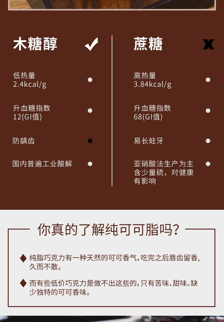 心心相印 木糖醇巧克力無蔗糖黑巧克力健身孕㛿代餐零食糖尿人食品純可可脂