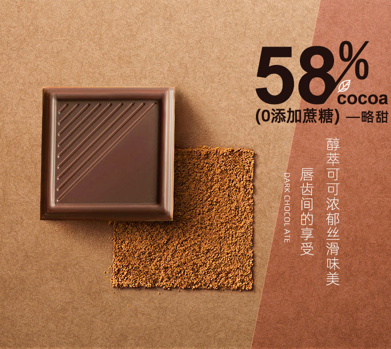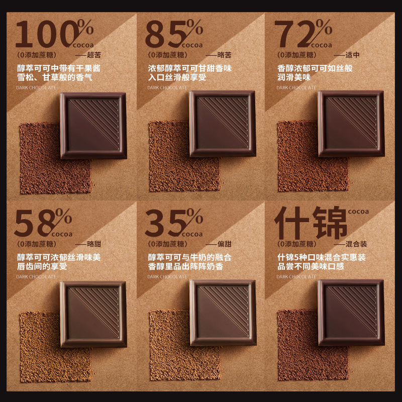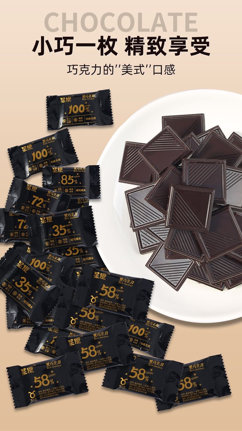 心心相印 純黑巧克力零添加蔗糖純可可脂健身休閒解饞零食闢穀輕食黑巧烘焙