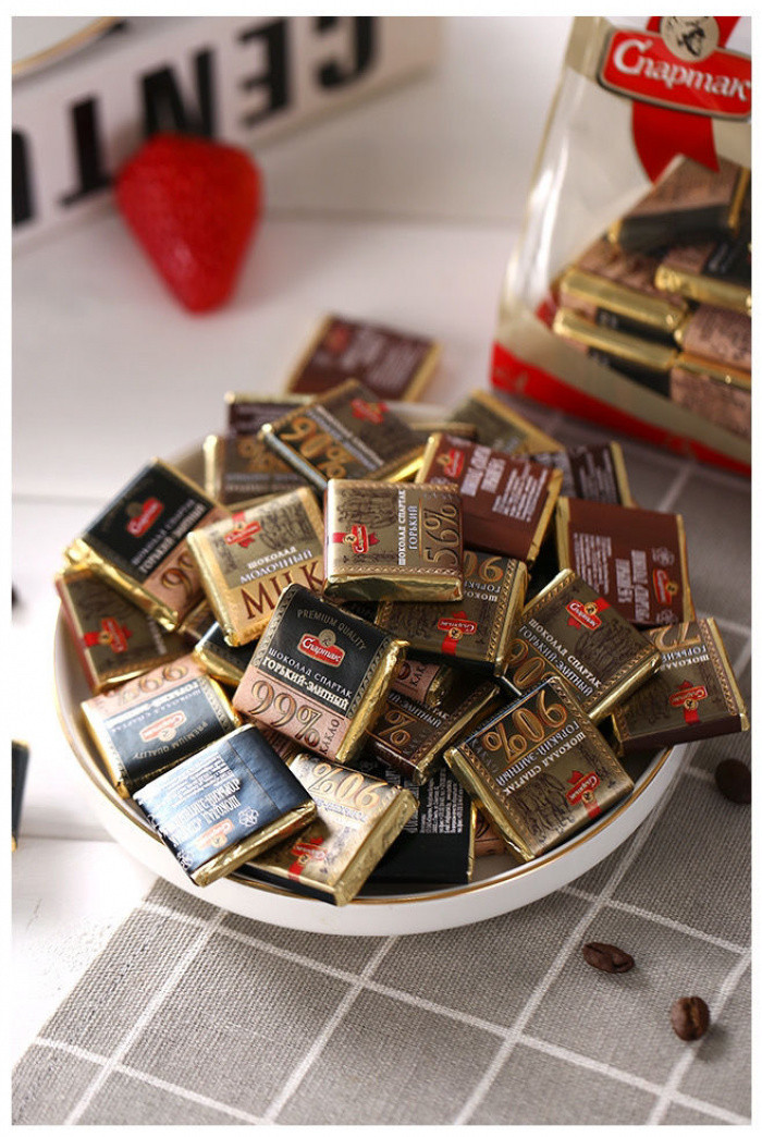 巧克力俄羅斯進口每日黑巧斯巴達克99%無糖純可可脂散裝喜糖零食