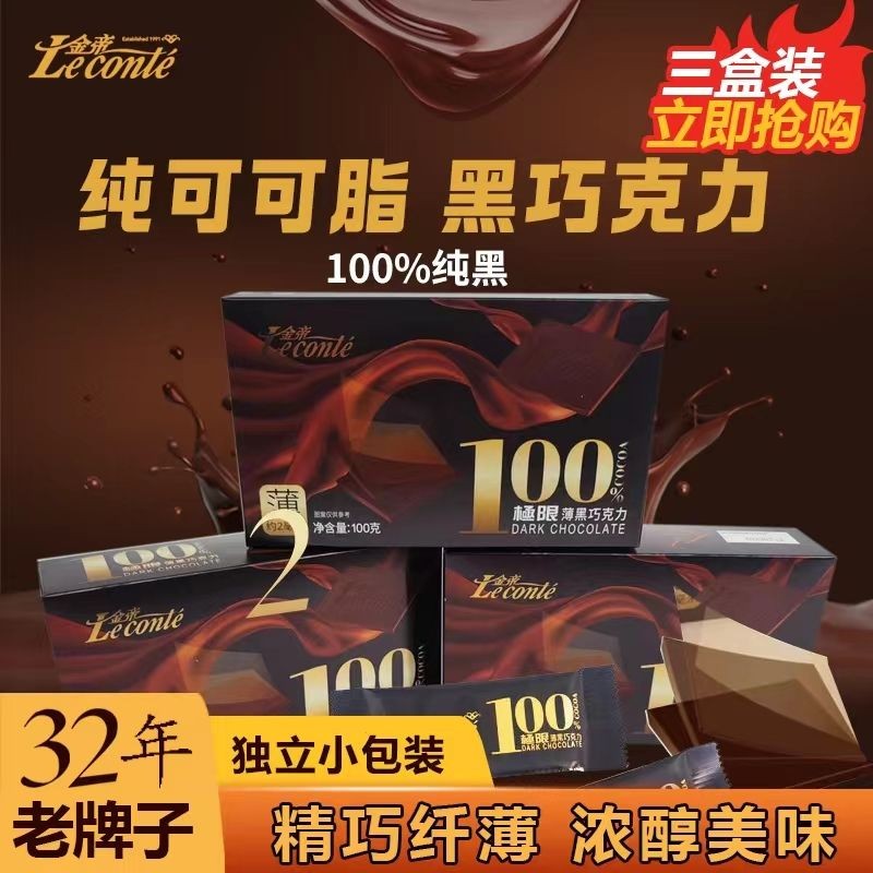 心心相印 【2907人好評】金帝薄黑巧克力純可可脂200g盒裝休閒小零食年貨送女友節日禮物
