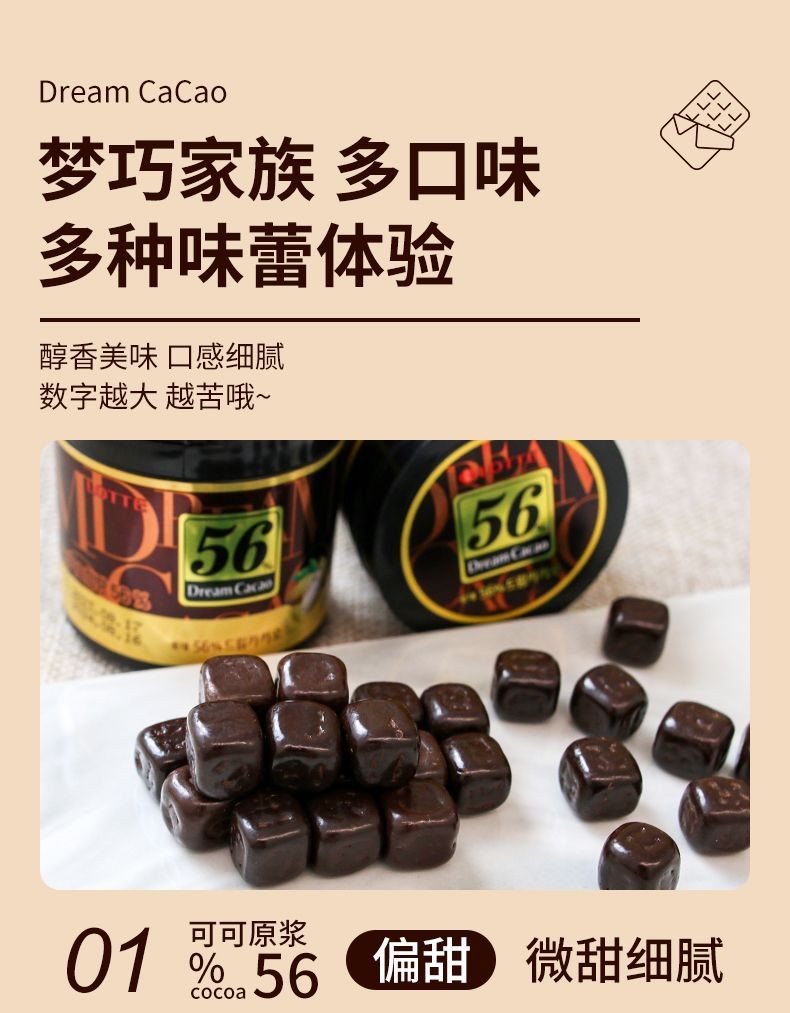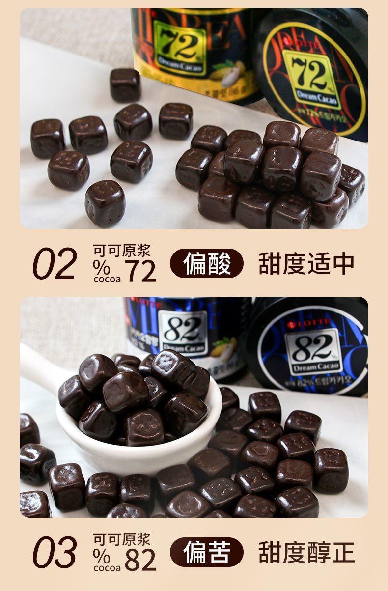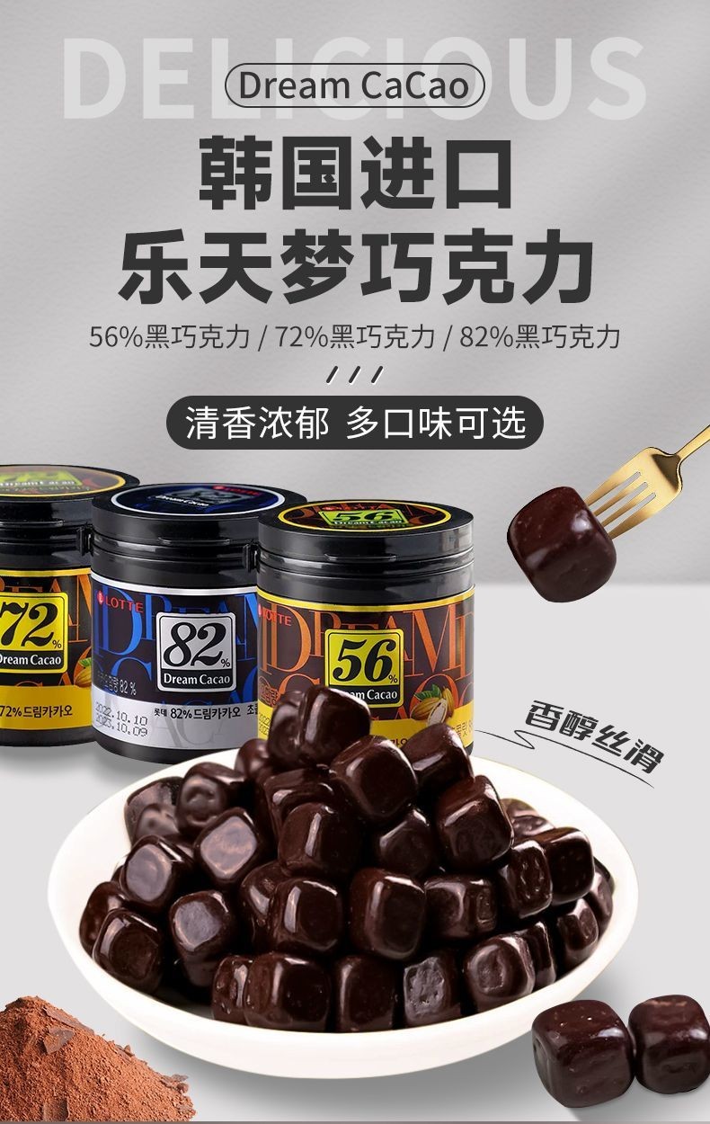 心心相印 LOTTE韓國進口樂天夢黑巧克力小方塊罐裝瓶裝巧克力零食72%56%82%