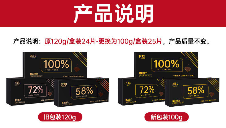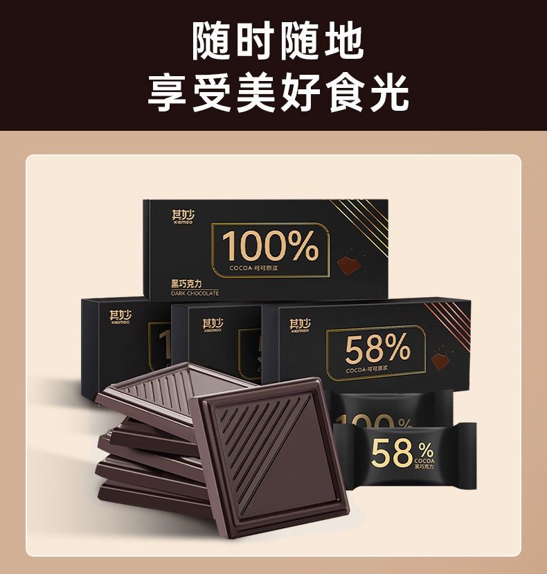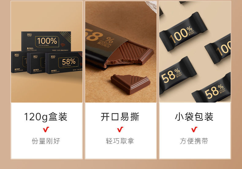 心心相印 100%黑巧克力每日純黑巧純可可脂零添加蔗糖健身俄羅斯風味零食