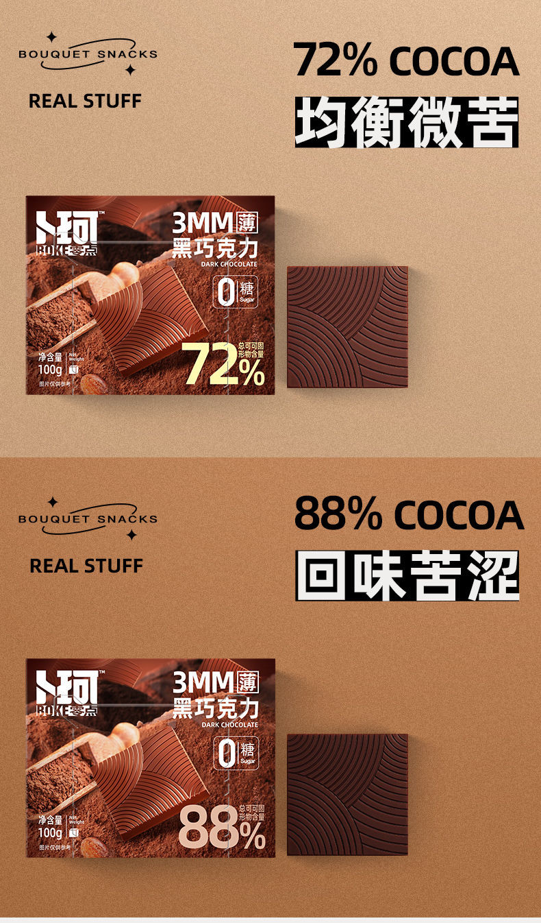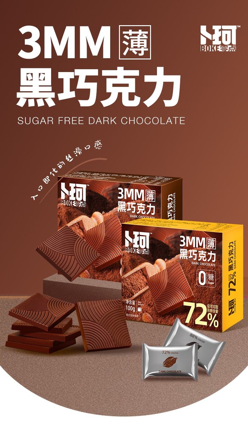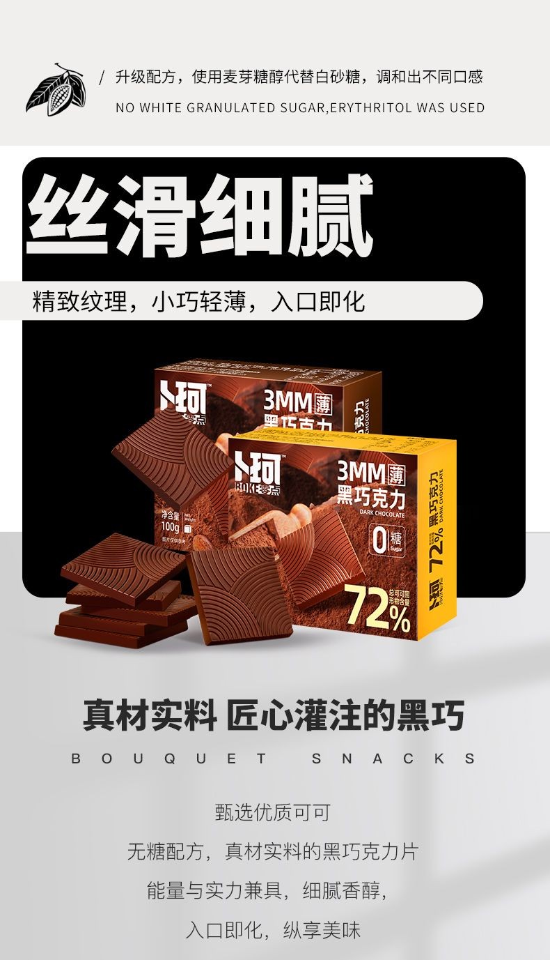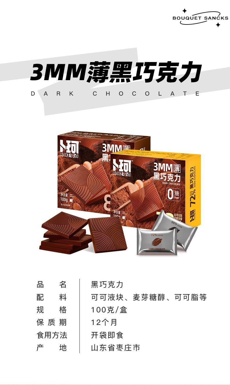 心心相印 蔔珂零點無蔗糖純黑巧克力純可可脂禮盒裝送女友休閒零食