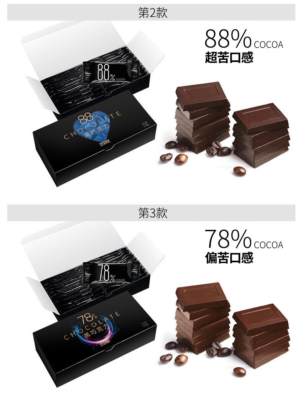 心心相印 100%純黑巧克力禮盒裝無蔗糖苦黑巧喜糖果散裝批髮網紅零食大禮包