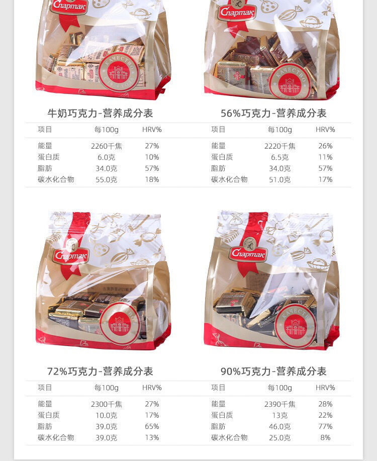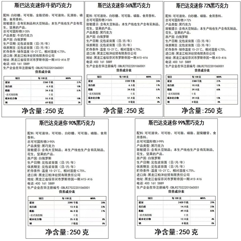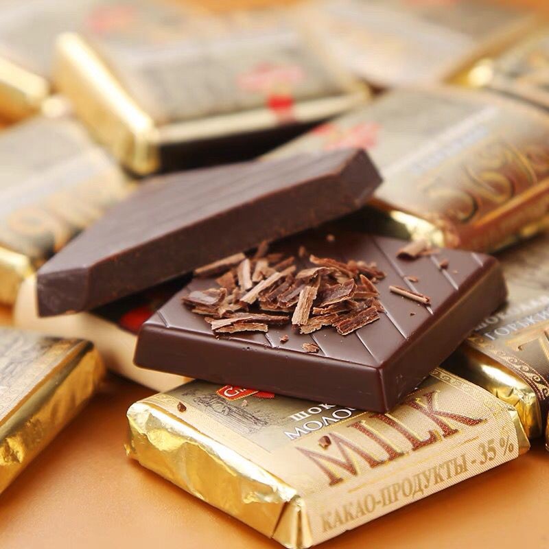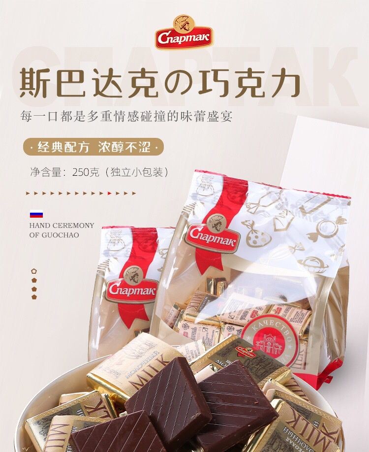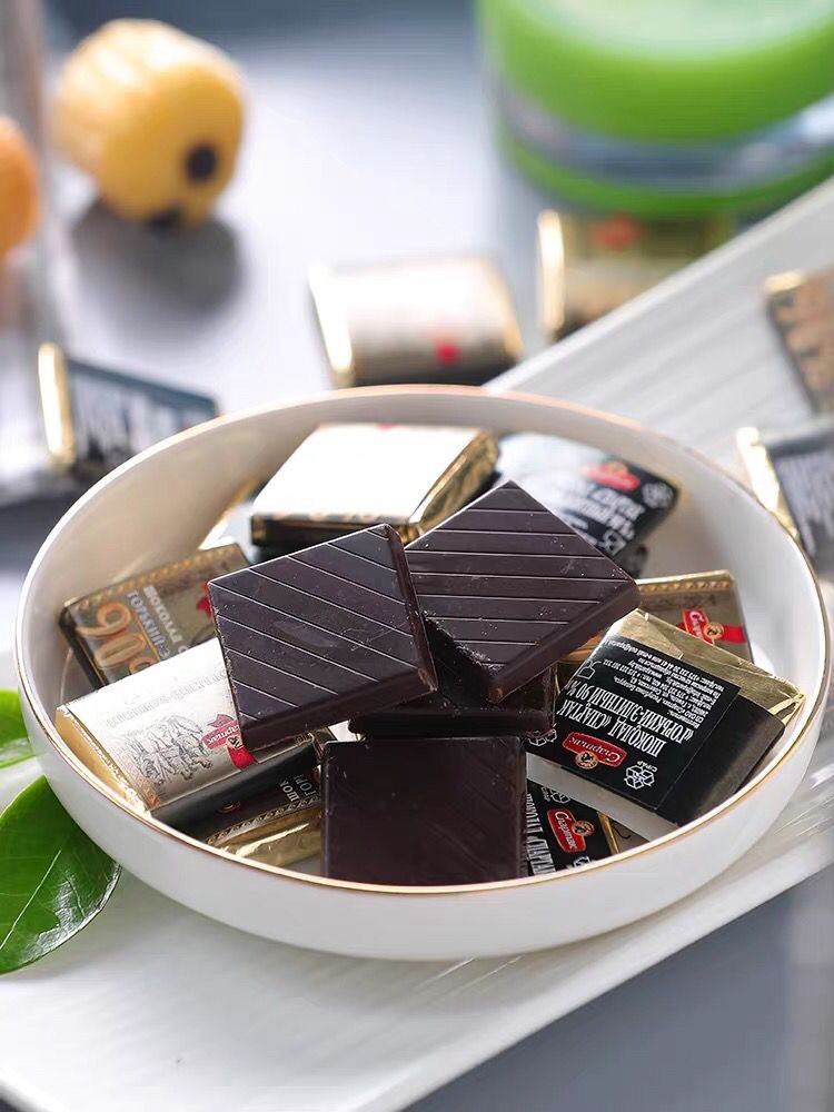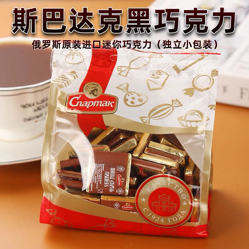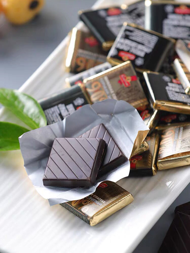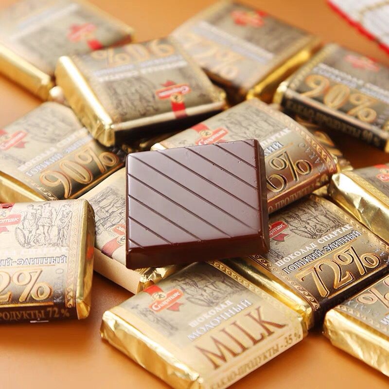 心心相印 【純可可脂】俄羅斯斯巴達克迷你72%90黑巧克力休閒進口網紅食品