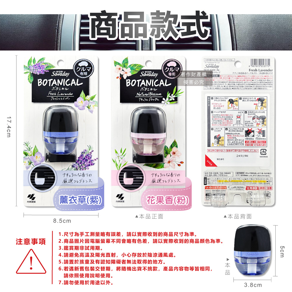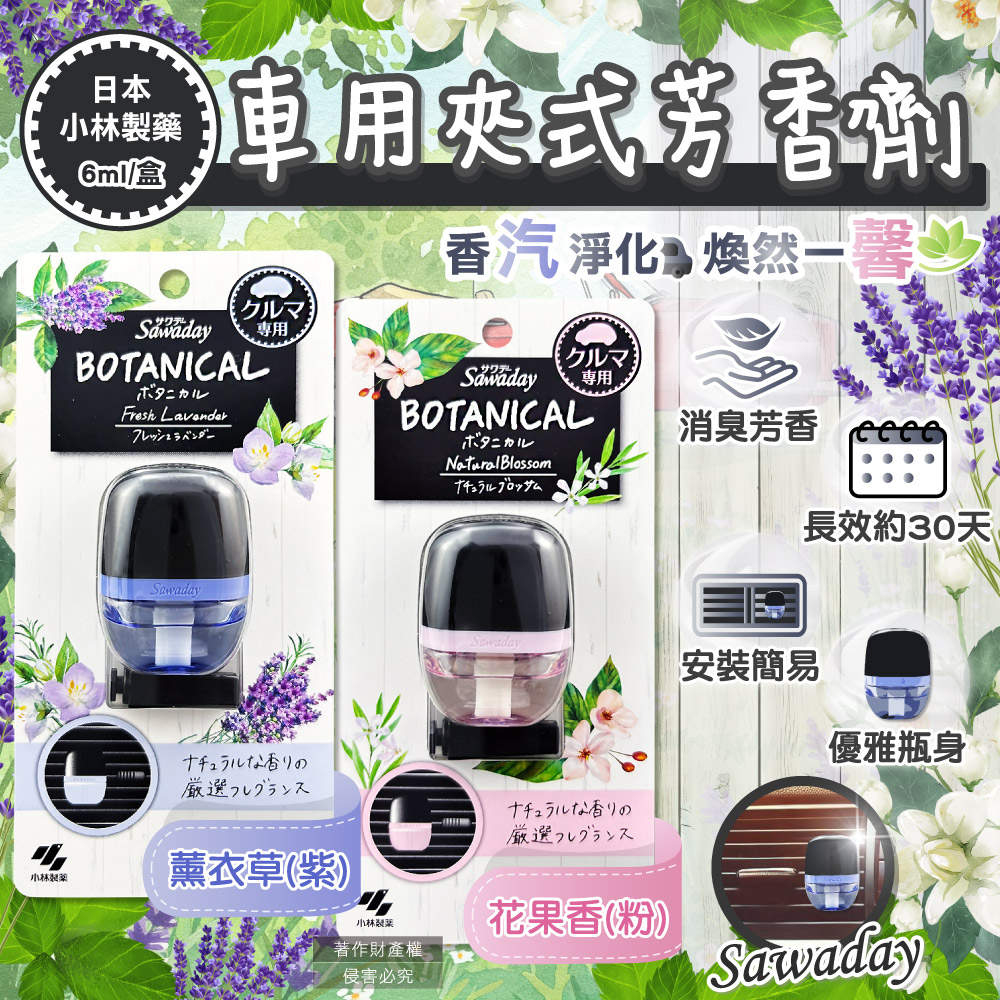 【小林製藥】日本小林製藥Sawaday BOTANICAL 車用夾式芳香劑 6ml/盒 薰衣草香或花果香車載香氛 汽車清新 擴香器