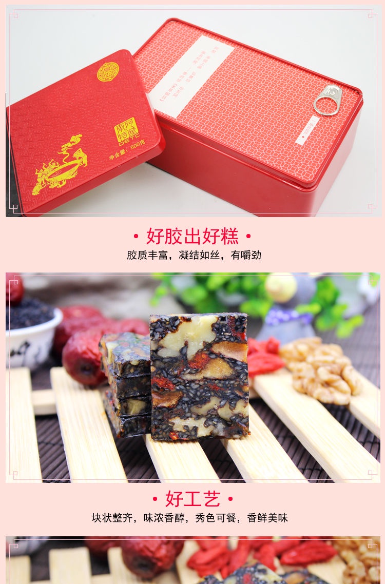 紅茶 茶葉 山東正品阿膠糕500g女士卽食阿膠固元膏手工純禮鐵盒禮盒裝禮品