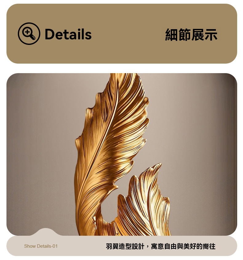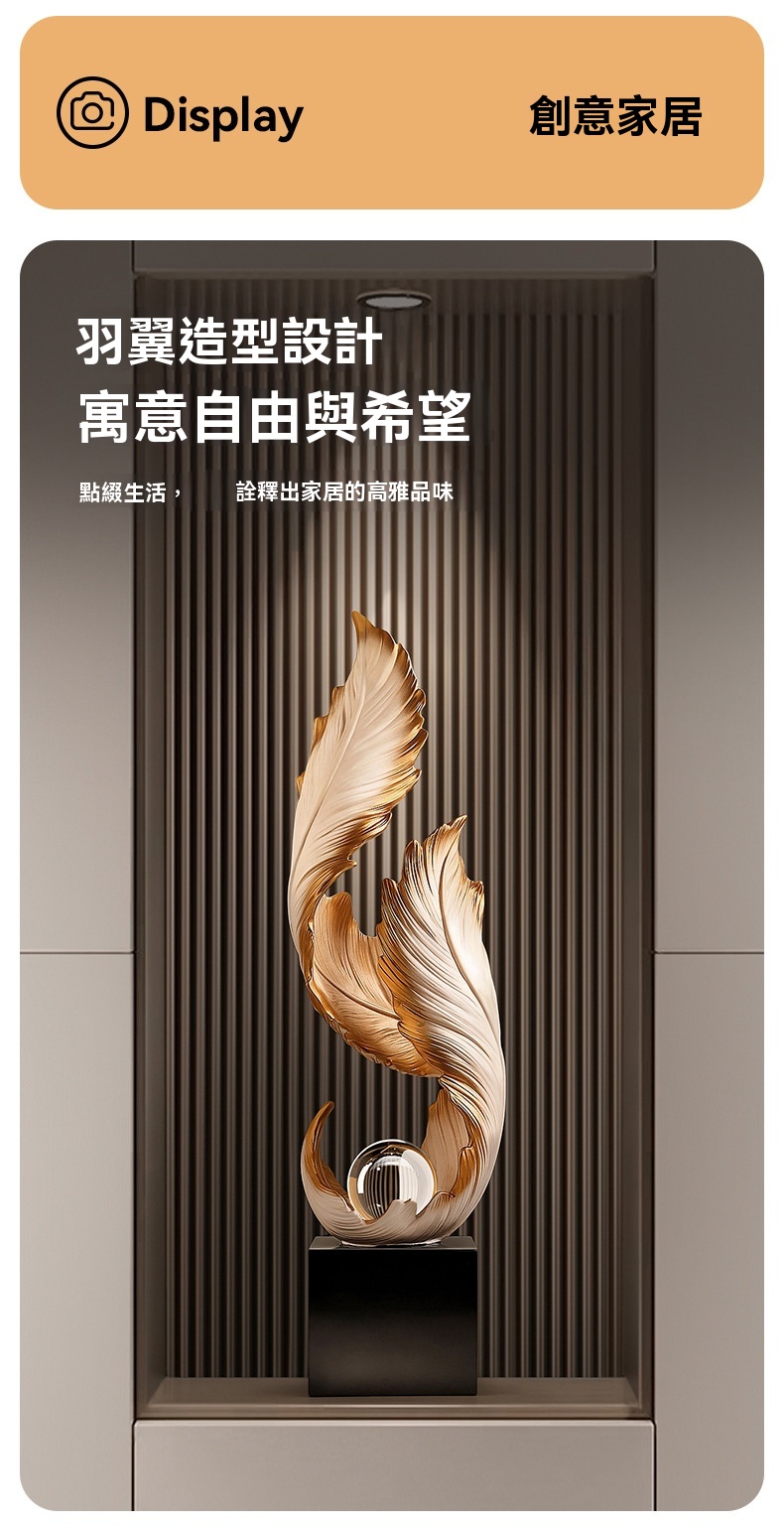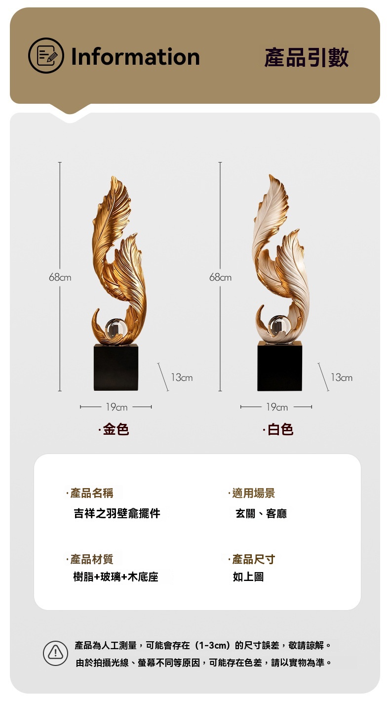 〖易利談〗入戶玄關擺飾 吉祥之羽裝飾品 金色/白色 底座厚實穩重 喬遷禮物