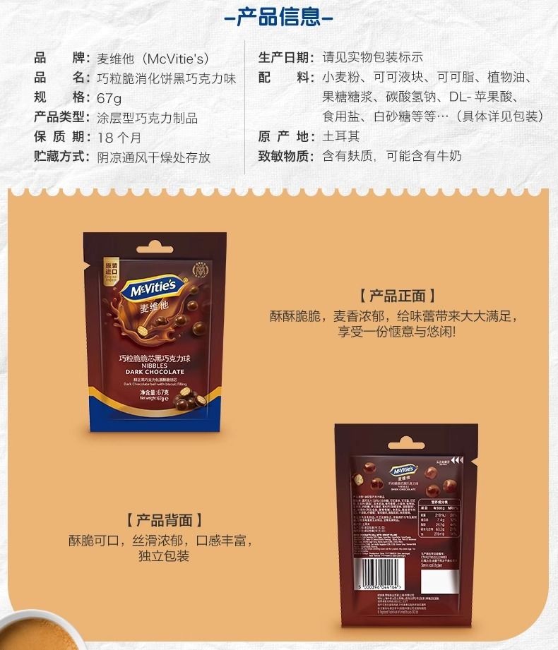 心心相印 麥維他進口麥麗素牛奶巧克力球67g*4黑巧克力球醇可可脂兒童零食