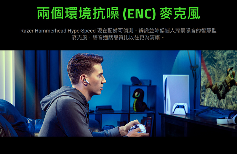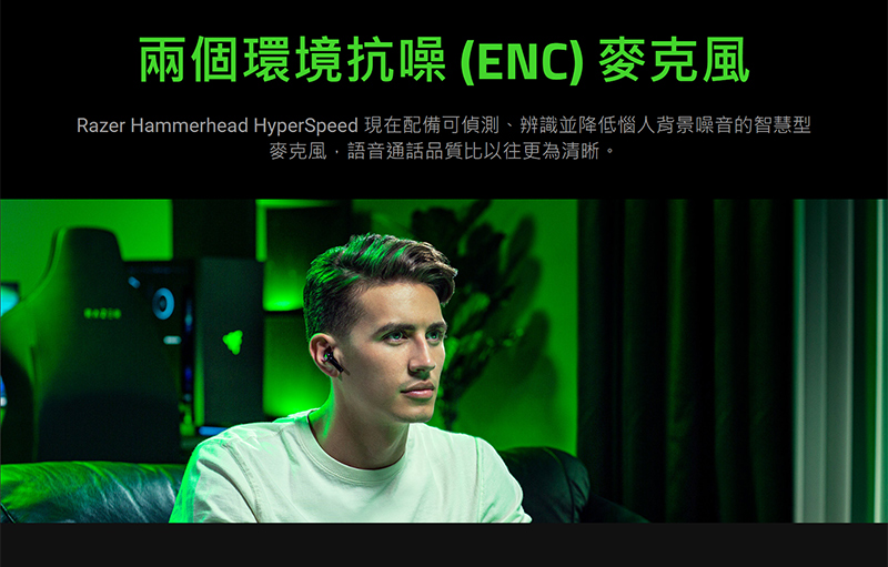 Razer Hammerhead HyperSpeed 現在配備可偵測、辨識並降低惱人背景噪音的智慧型麥克風,語音通話品質比以往更為清晰。