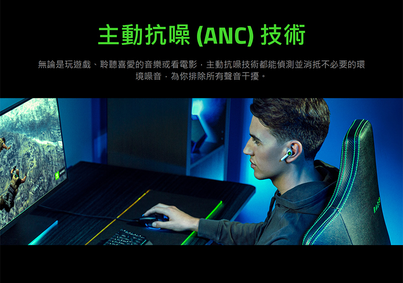 Razer Hammerhead HyperSpeed 無線遊戲耳機提供無干擾的沉浸感受與不受拘束的自由度,讓你無論在哪裡玩遊戲都舒適無比。有了 2.4Ghz 電競級無線效能與藍牙 5.2 技術,讓你隨身攜帶、隨時隨地玩遊戲。