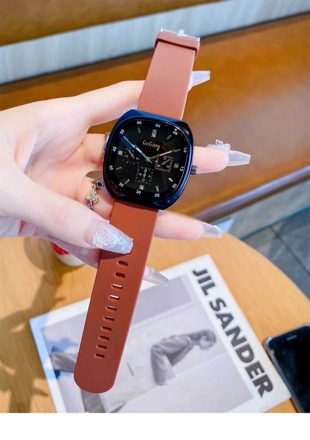 小李甄選 小衆方形硅膠女士手錶學生高顔值潮流休閒百搭運動高級感氣質女錶