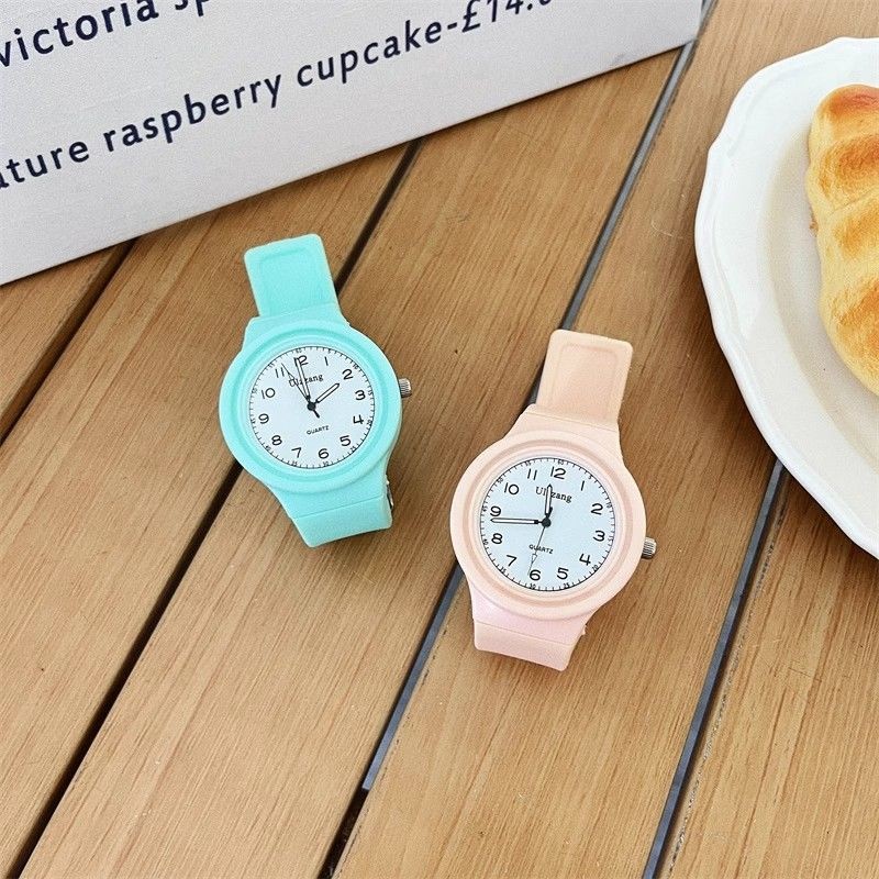 小李甄選 新款高顔值奶茶色手錶女初高中學生圓盤夜光指針式數字考試用石英
