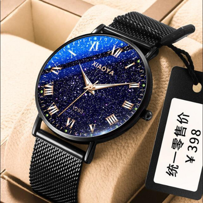 小李甄選 手錶男士超薄滿天星網帶學生百搭超強夜光電池防水高級感高檔石英