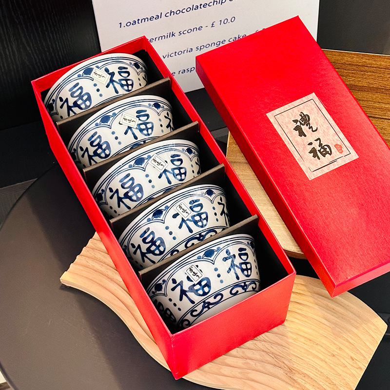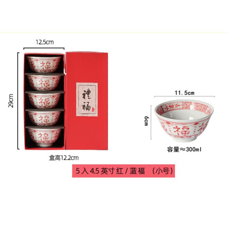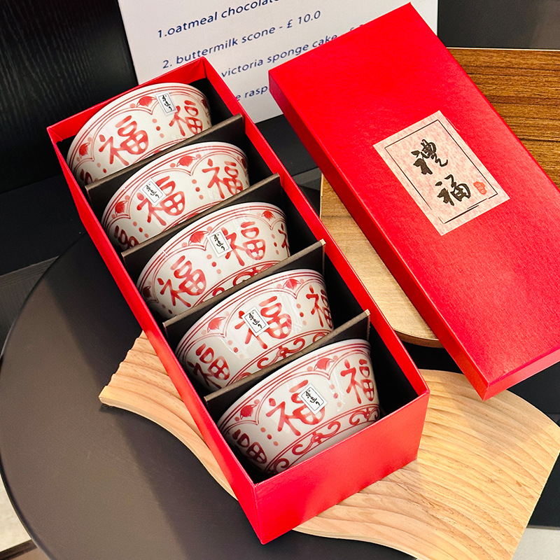 台灣現貨 禮福 禮盒 禮品 五碗禮盒 陶瓷 手繪 釉下彩 耐高溫 自用 送禮 中式 商會 過年 春節 喬遷