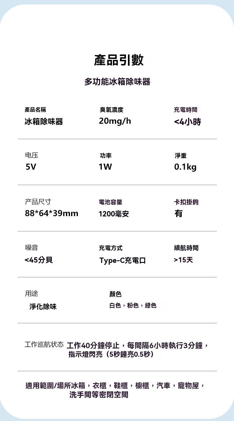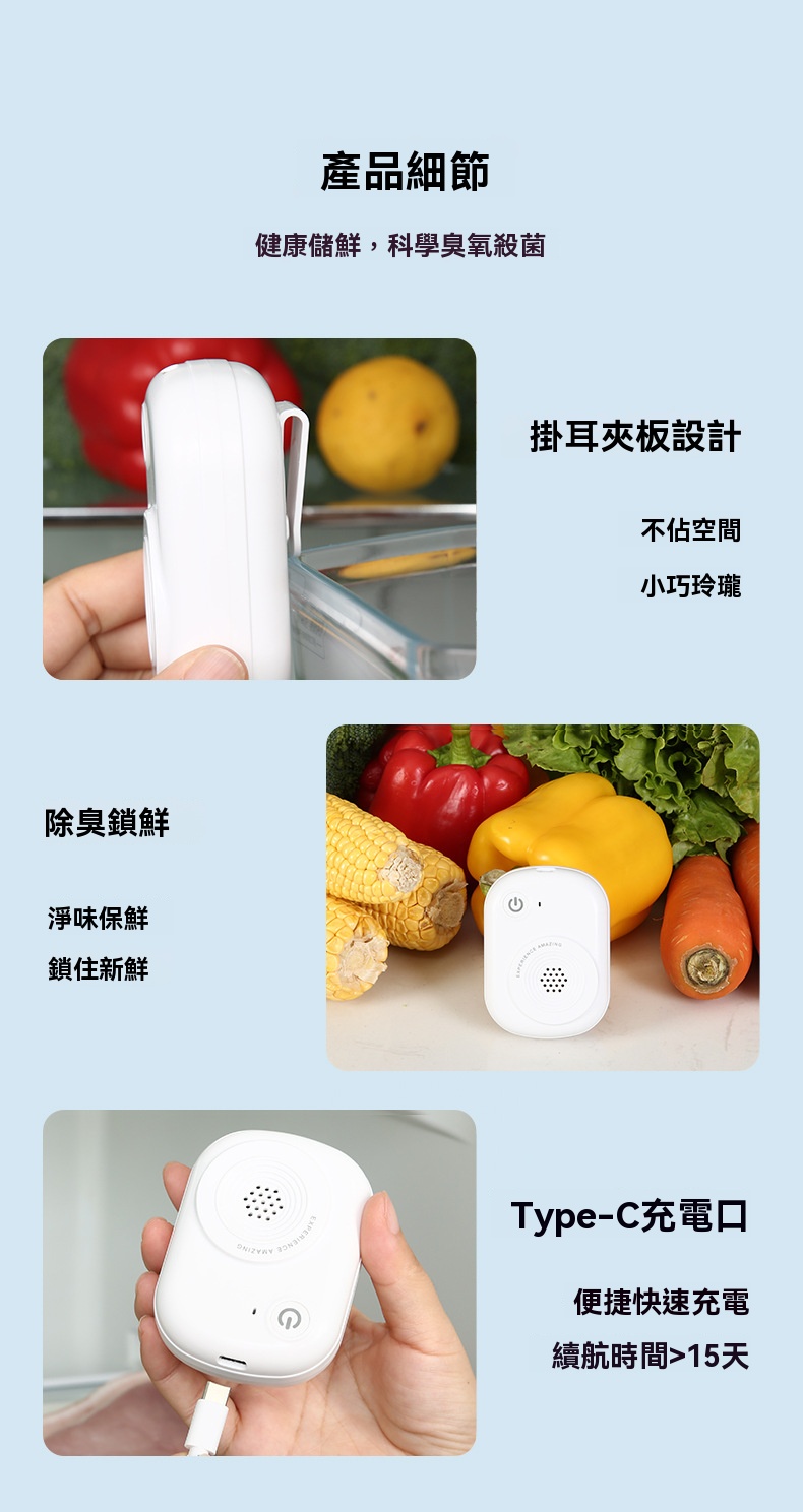 【Future Tech 未來科技】冰箱除味器 空氣凈化臭氧殺菌神器 便攜式家用除臭器去異味