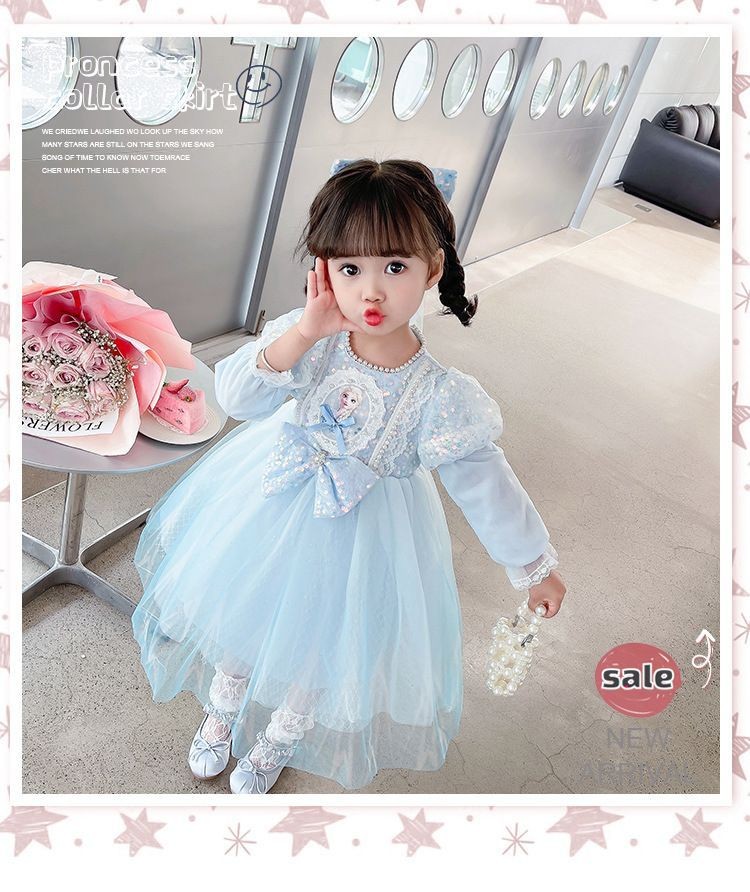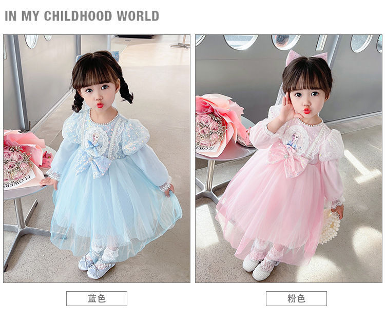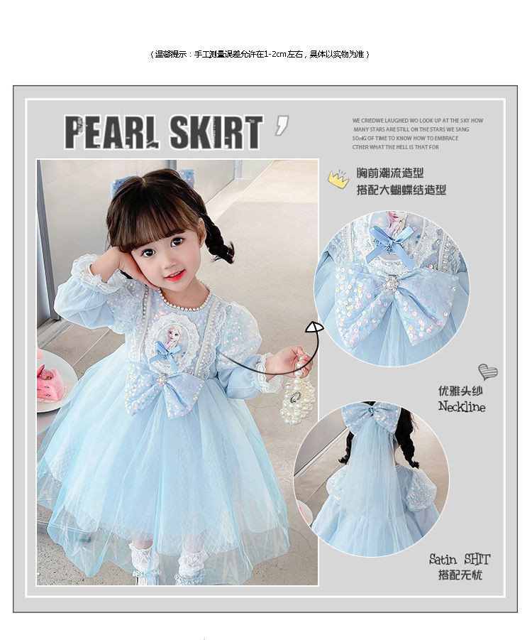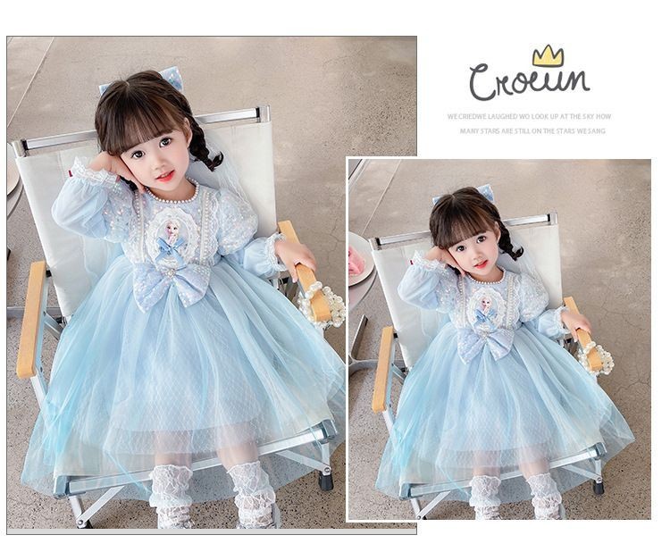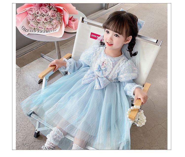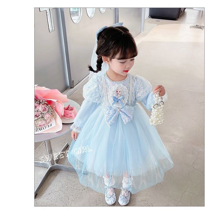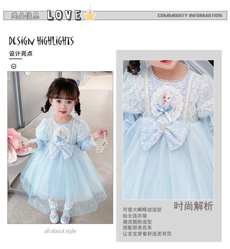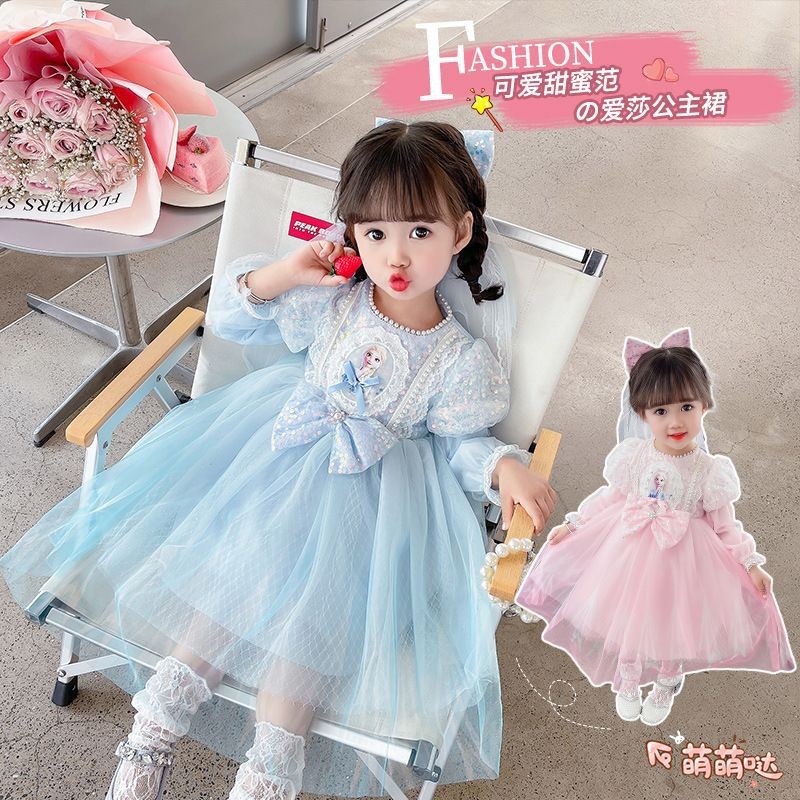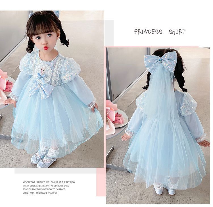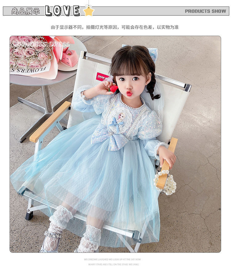 女寶寶艾莎公主裙長袖2025秋季冰雪奇緣網紗髮光裙子生日愛莎連衣