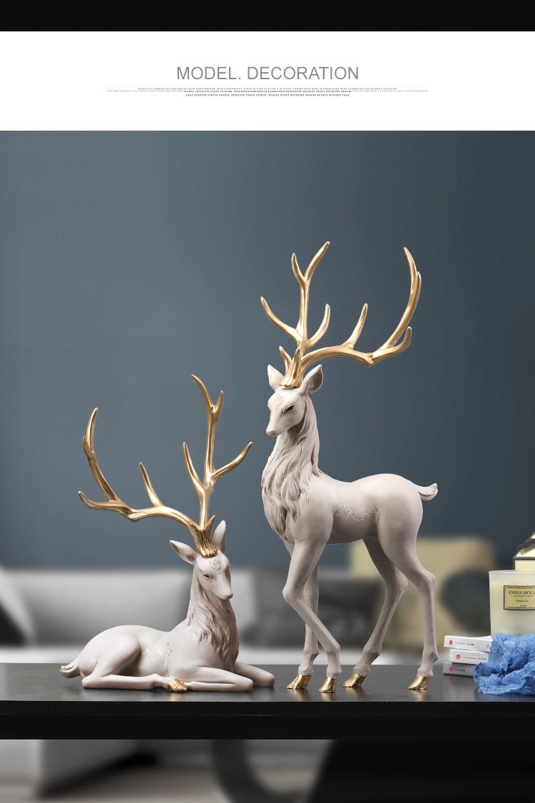 【LEZUN 樂尊】麋鹿擺件玄關家居創意擺設品電視酒櫃裝飾品喬遷新居禮物