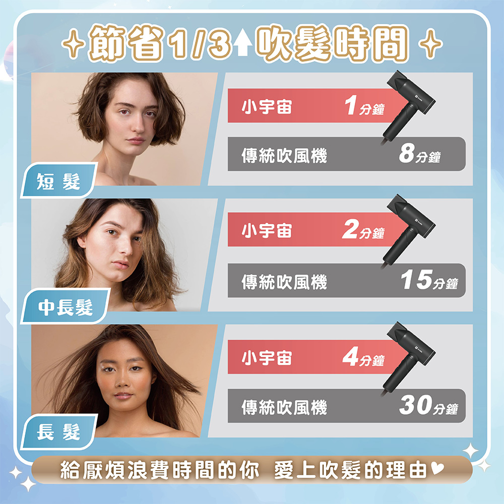 ✨風量集中超速乾,長髮吹乾4-5分鐘更快速