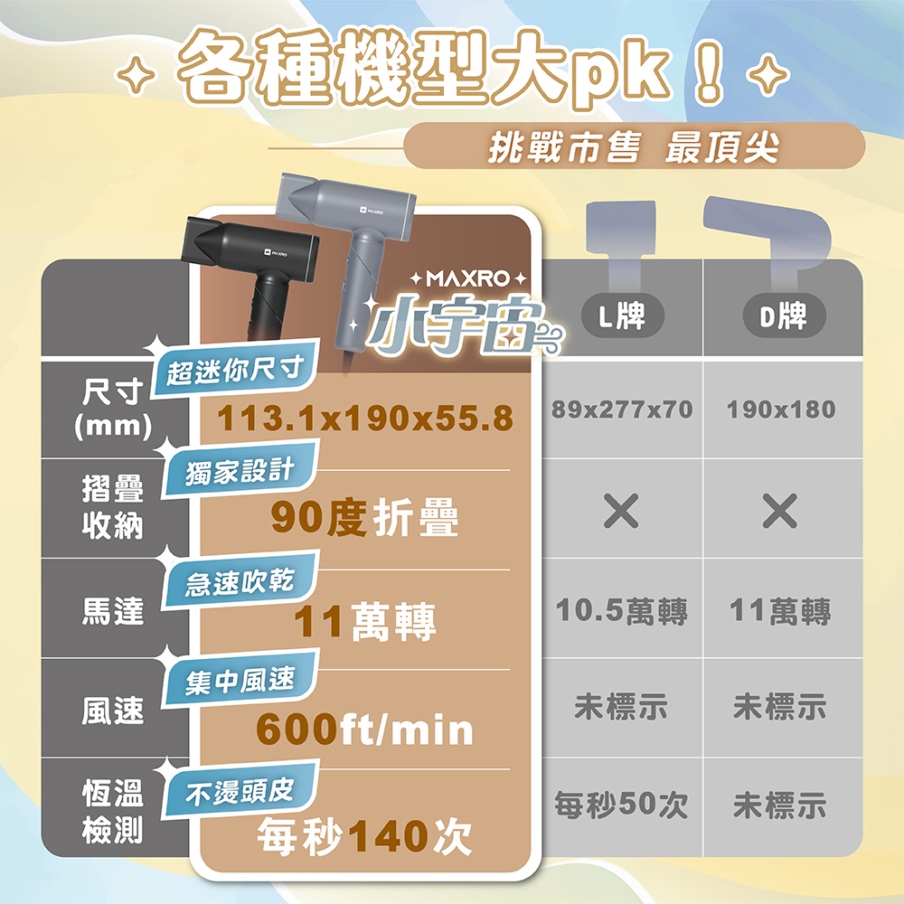 ✨NTC智能溫控防護,監測風溫防止過熱損害