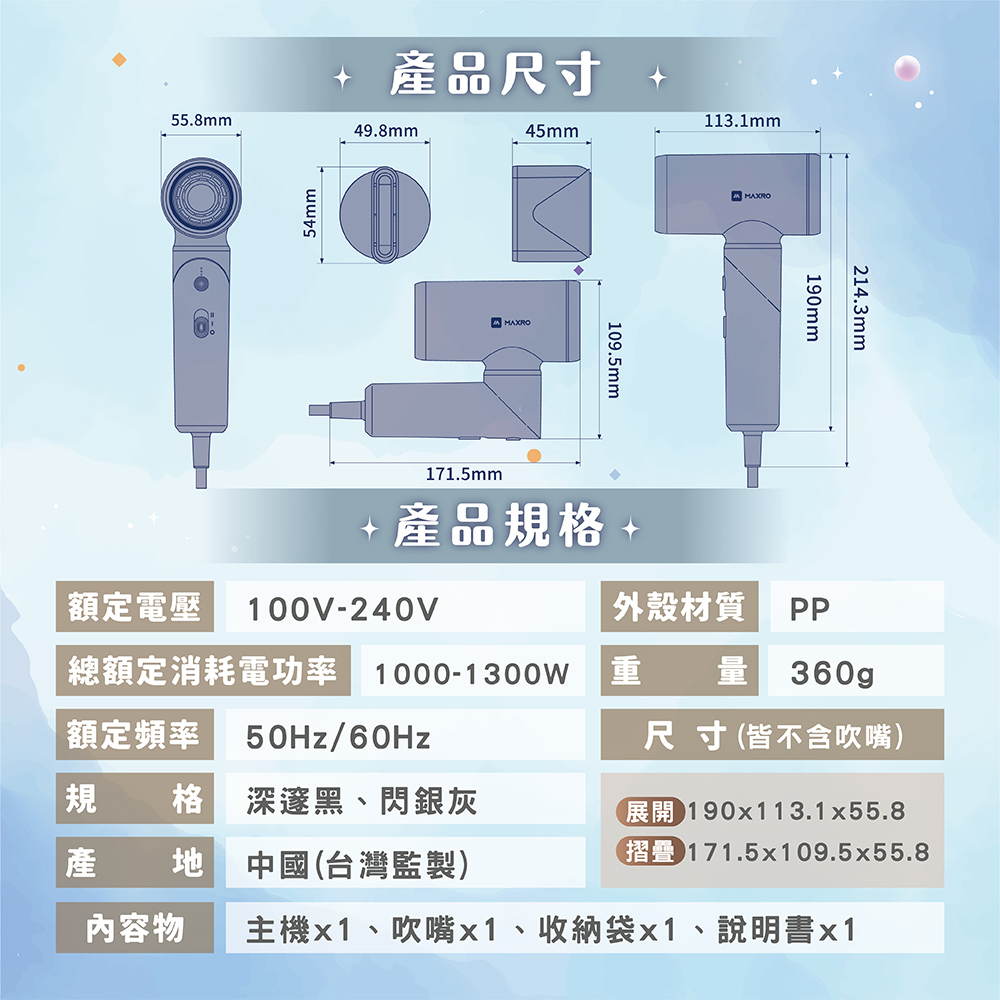 ✨尺寸:〔展開〕190x113.1x55.8mm;〔折疊〕171.5x109.5x55.8