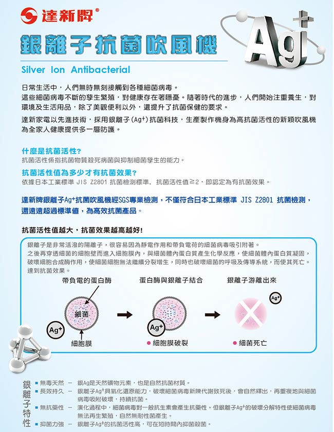 無慣長效銀離子(AG )抗菌機身,經SGS檢測高抗菌活性值>6快速抑菌殺菌,為全家人健康提供多一層防護
