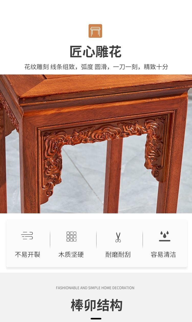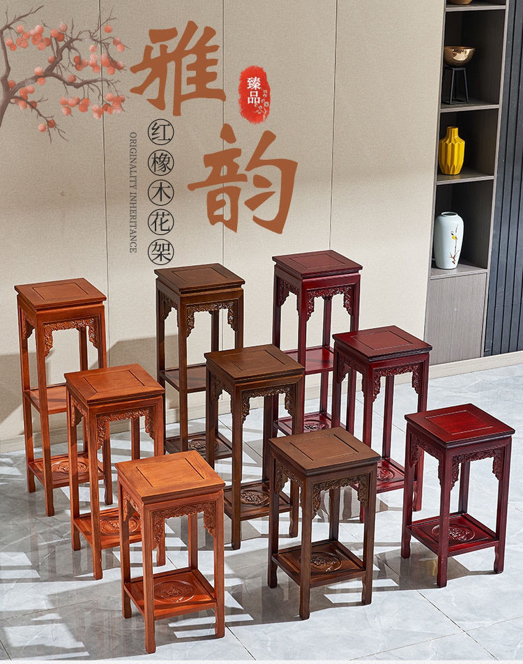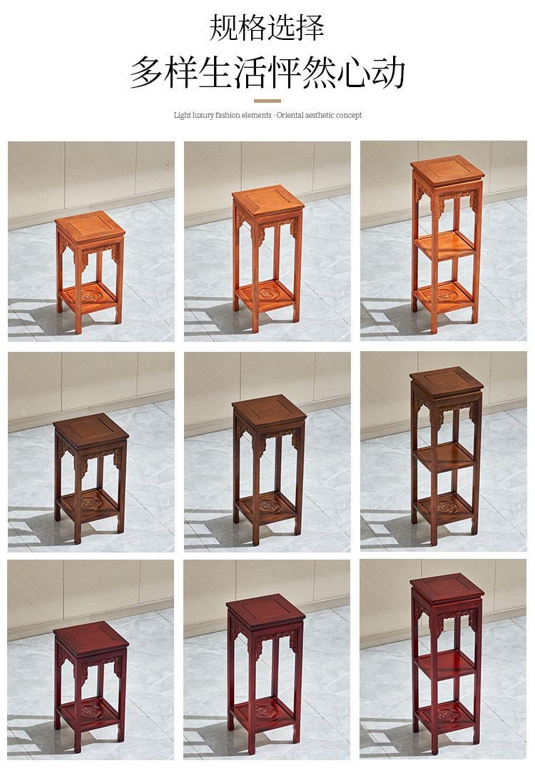 實木花架仿紅木新中式傢用客廳仿古花幾室內置物架榆木盆景架園藝 陽臺花架 花盆 盆栽架 植物架