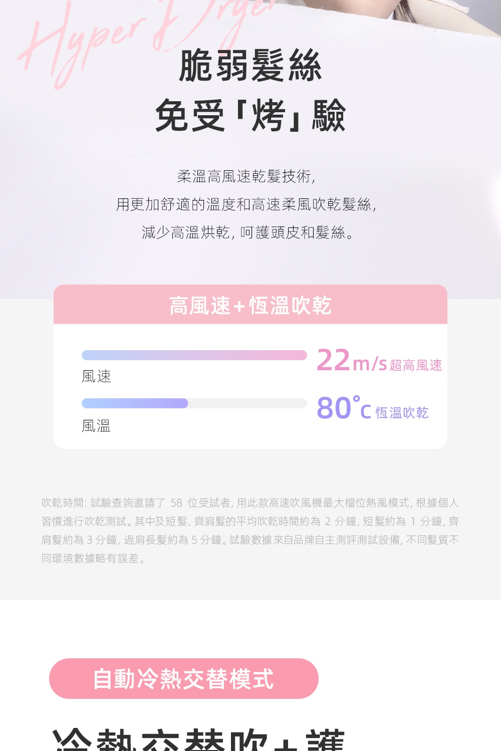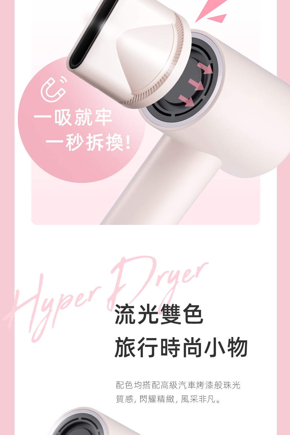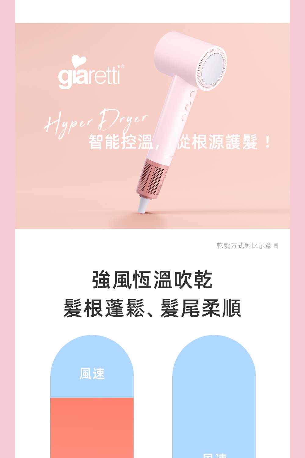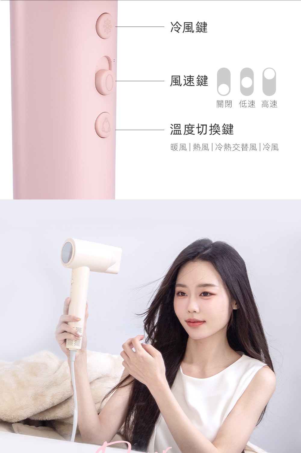 釋放34億等離子-保濕鎖水、撫平毛燥NTC智能冷熱循環風-呵護受損秀髮8種使用模式-貼心打造個性髪型11萬轉BLDC高速馬達-快速乾髮低電磁波輻射-安心使用經典兩色,隨心選擇
