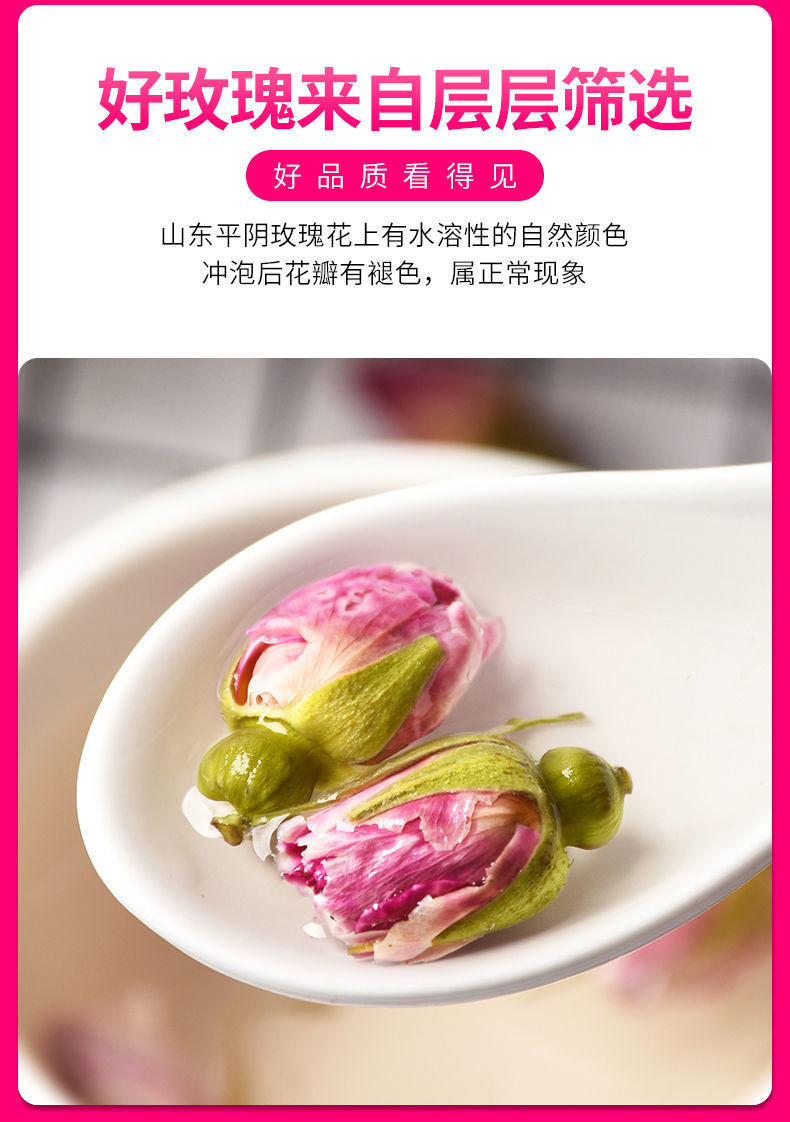 婷婷精品 平陰紅玫瑰花茶花冠茶女神茶非有機大朵泡水幹重瓣玫瑰組閤