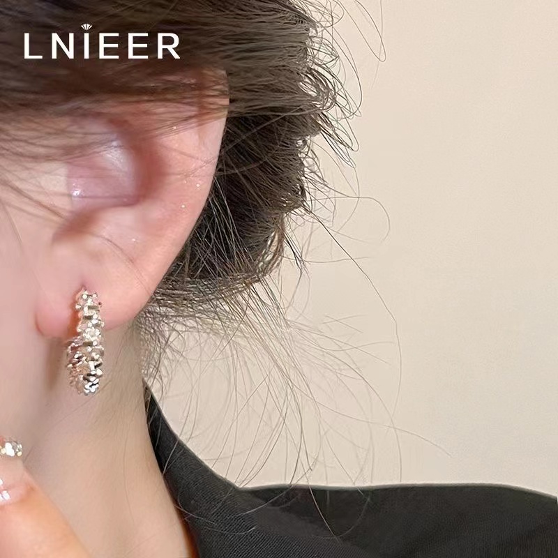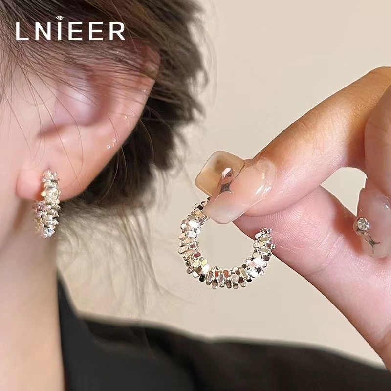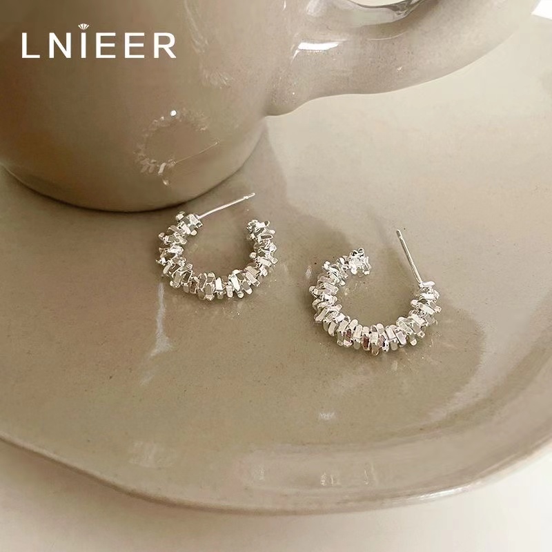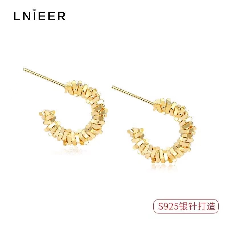 S925銀針碎銀子耳環女法式小眾耳釘半圓圈耳飾