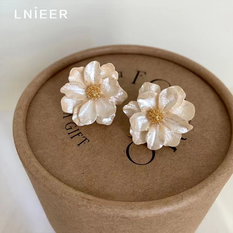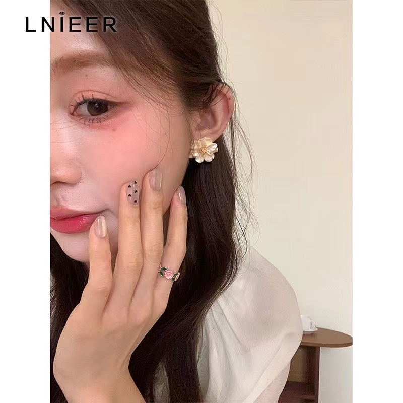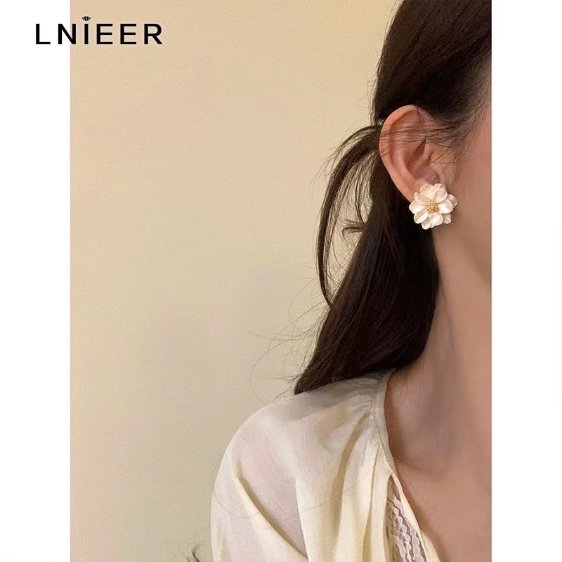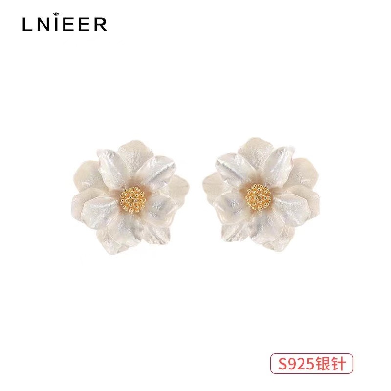 S925銀針山茶花耳環女2025新款氣質百搭輕奢小眾高級耳釘秋冬耳飾