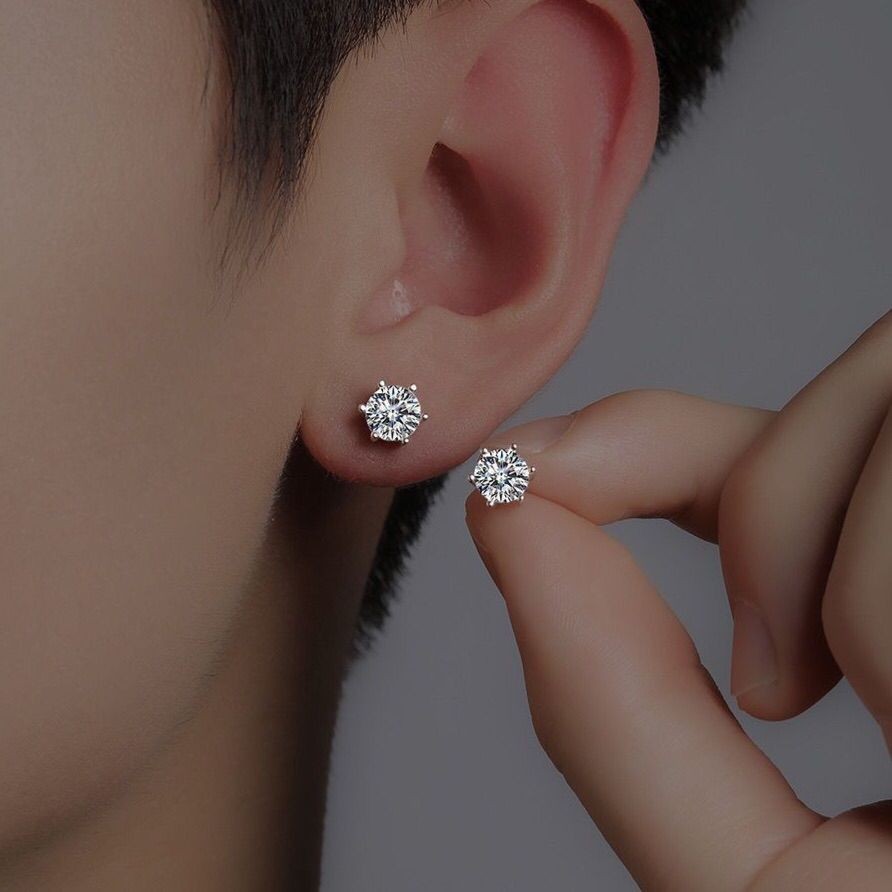 閤金耳飾鋯石 簡約男士耳釘男 百搭高級感六爪爆閃睡覺免摘防過敏耳釘 男士耳釘 ins耳釘 耳環 耳釘男 耳釘