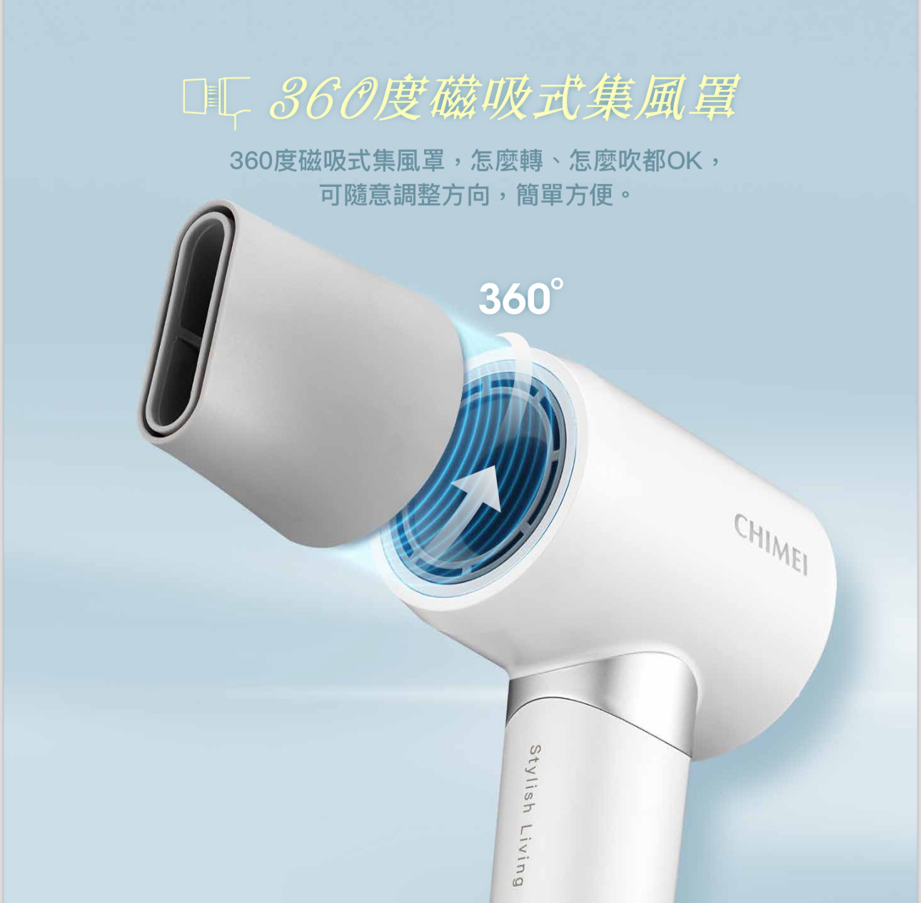 360度磁吸式集風罩,怎麼轉、怎麼吹都OK,可隨意調整方向,簡單方便。