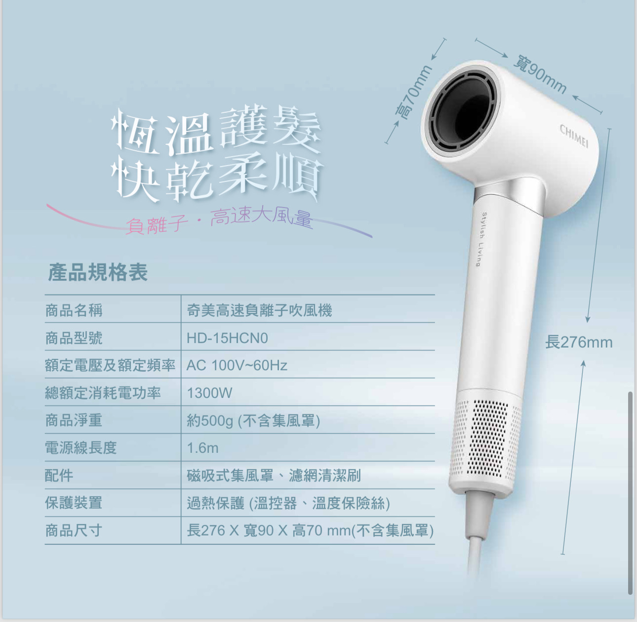機身輕巧好握,吹頭髮省力不手痠,讓您輕鬆又優雅。體積小巧好收納,旅遊也方便攜帶。
