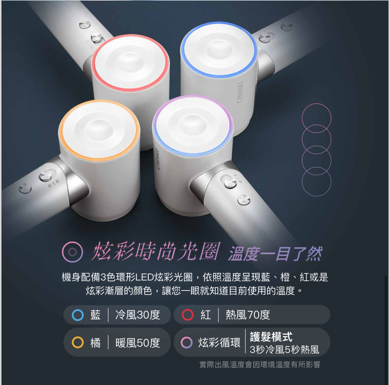 機身配備3色環形LED炫彩光圈,依照溫度呈現藍、橙、紅或是炫彩漸層的顏色,讓您一眼就知道目前使用的溫度,一目了然。