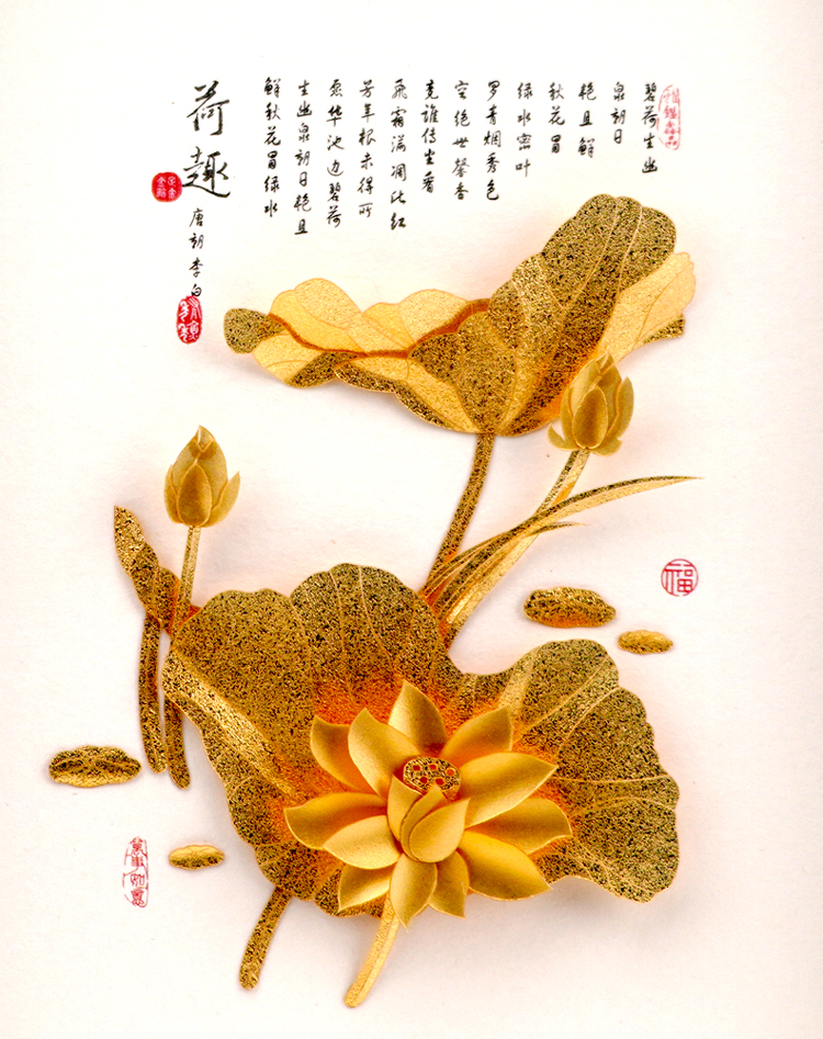 金箔畫荷香蓮花|退休生日新居禮物首選