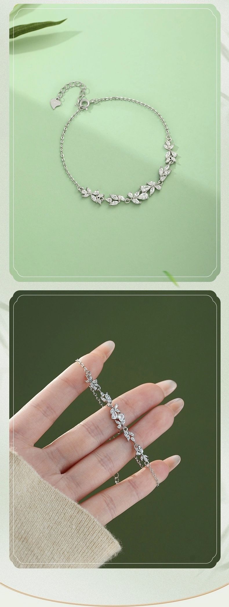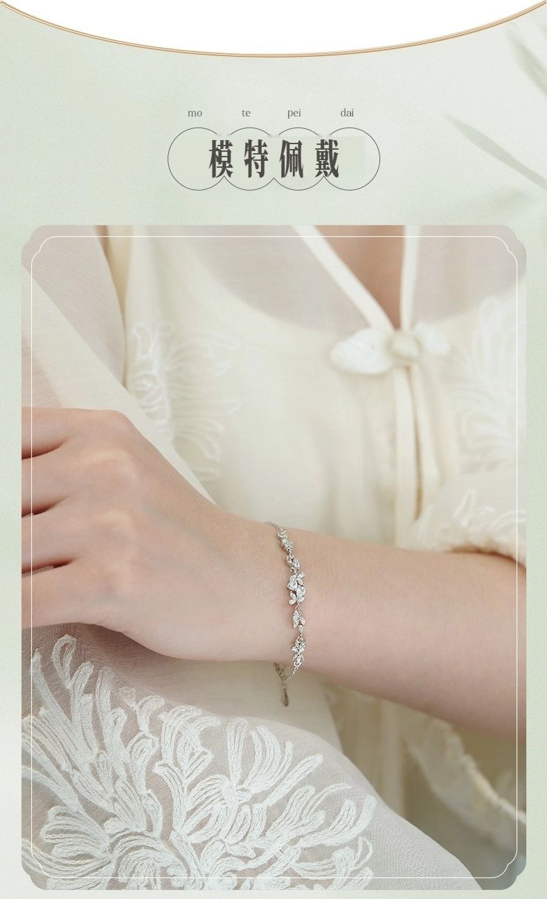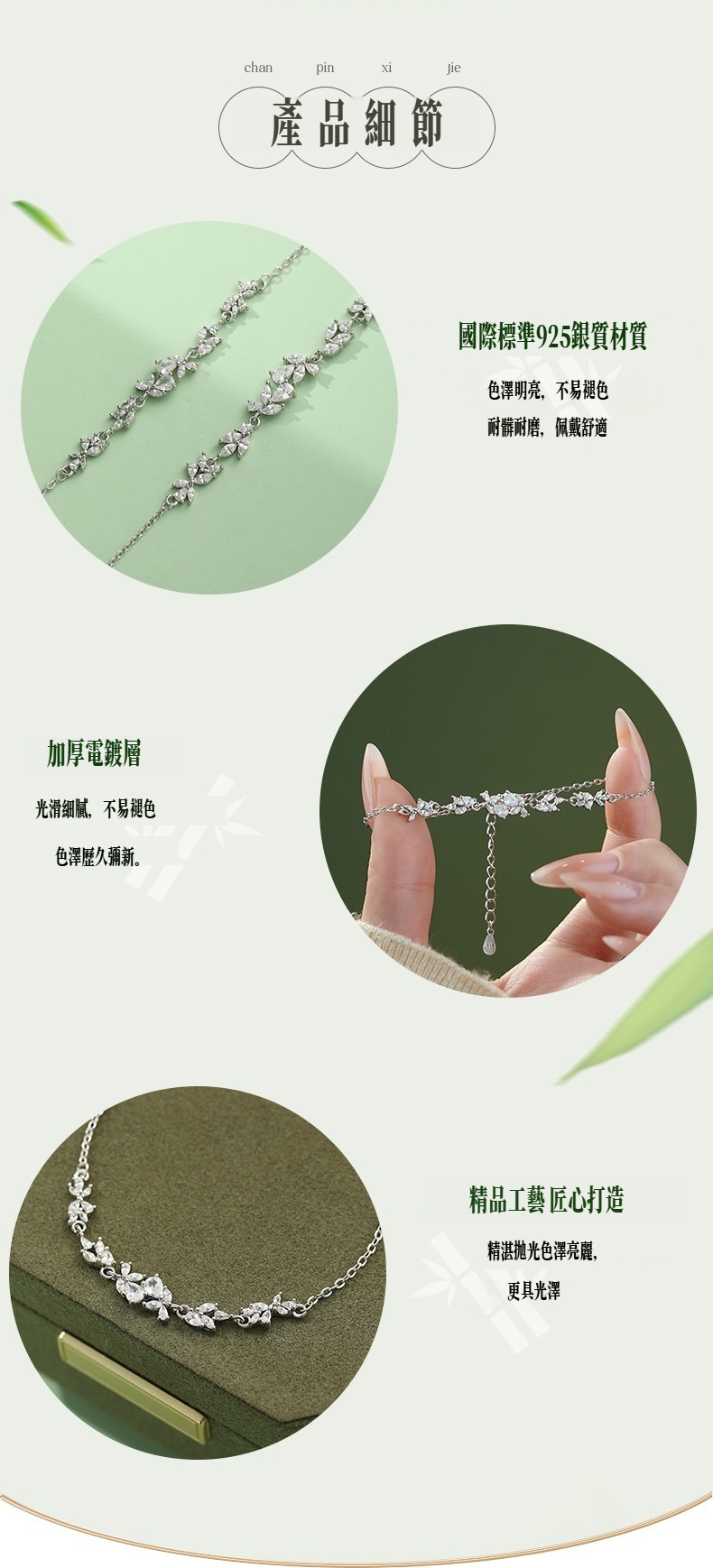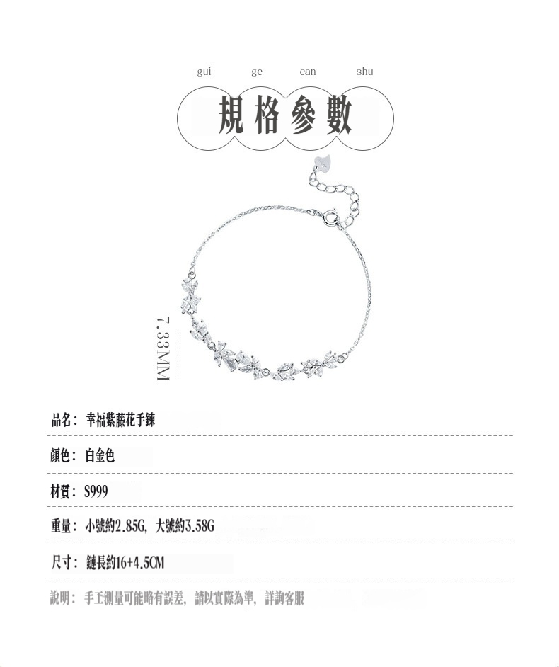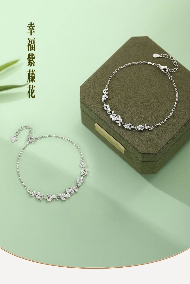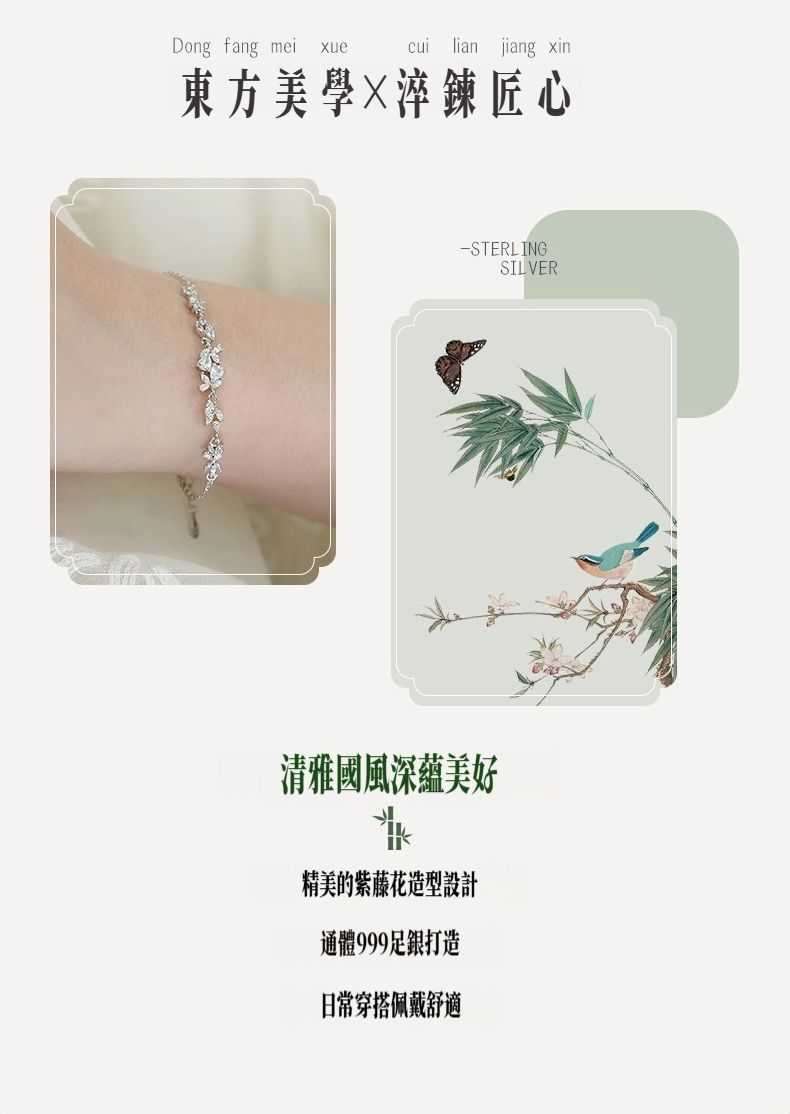 紫藤花純銀鋯石手錬 S999足銀飾品 女生手錬 不易掉色 防過敏 溫柔甜美清新 百搭飾品 情人節禮物 生日禮物
