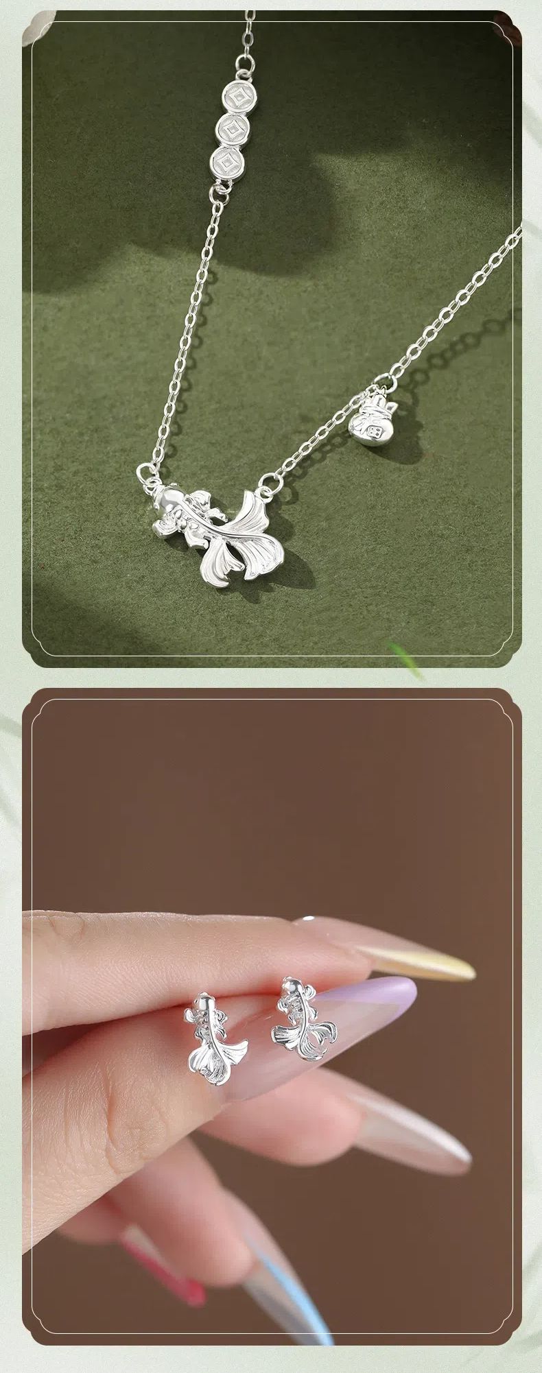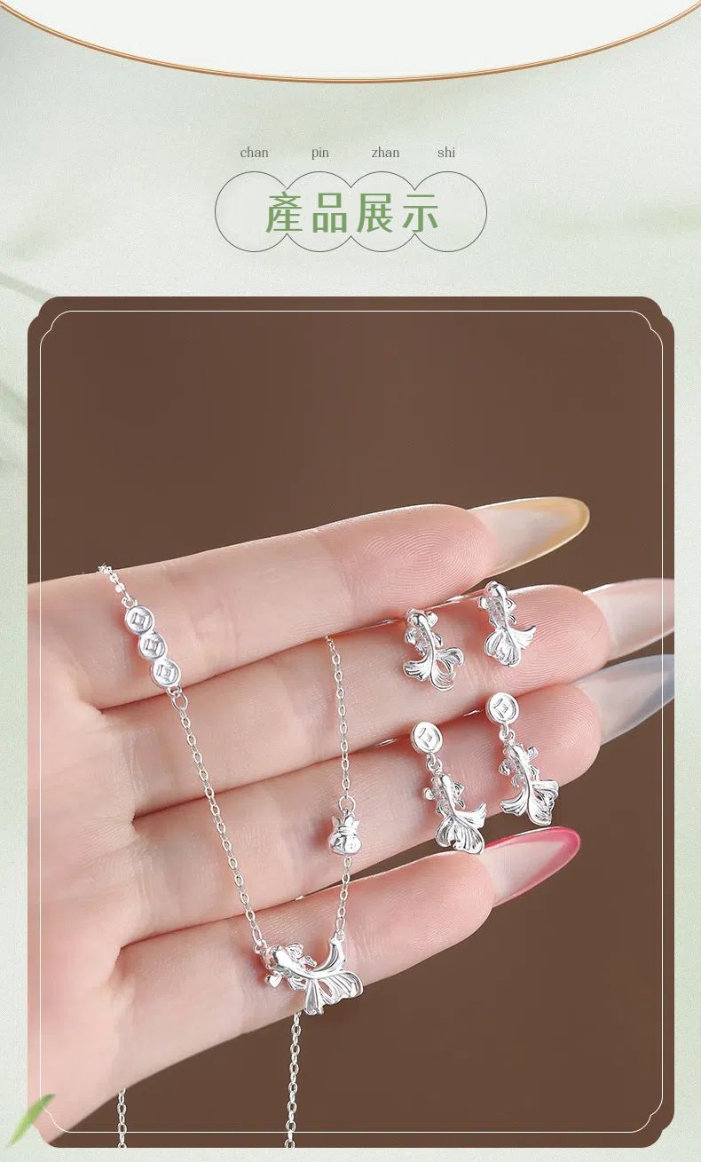純銀福袋銅錢錦鯉項鏈耳釘 S999足銀 不易過敏 項錬 耳釘 純銀飾品 福運財運 生日禮物 情人節禮物 送女友送好友