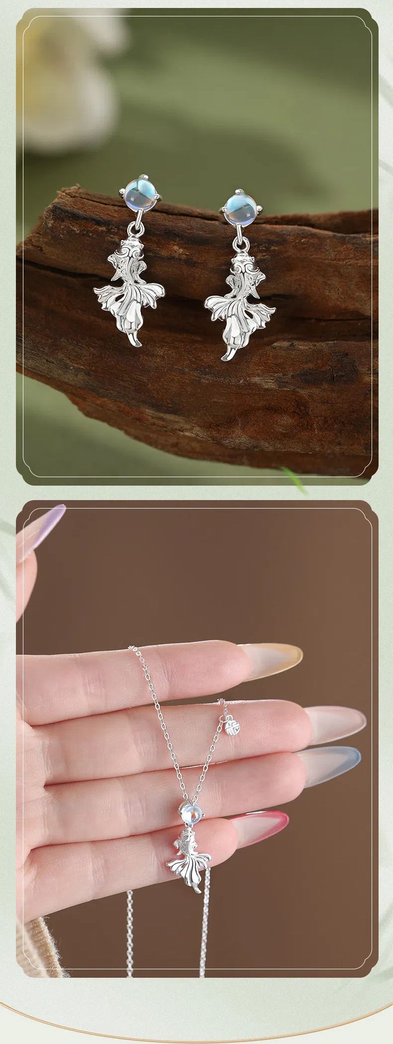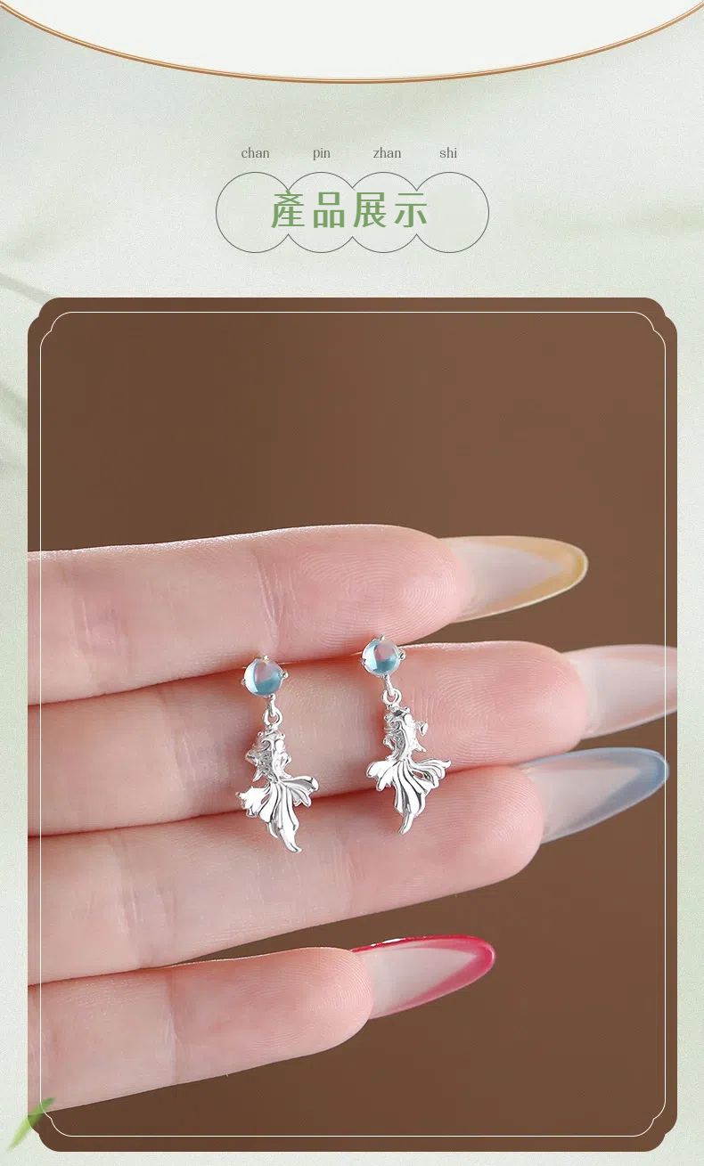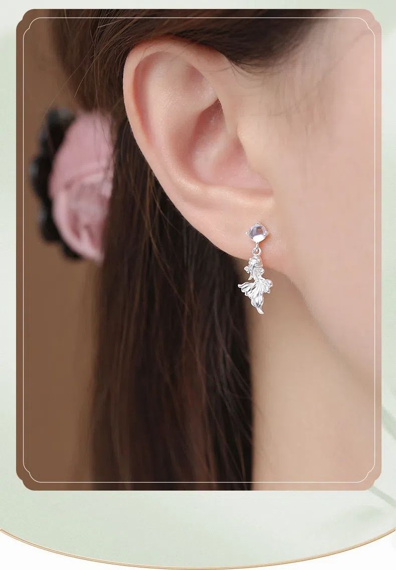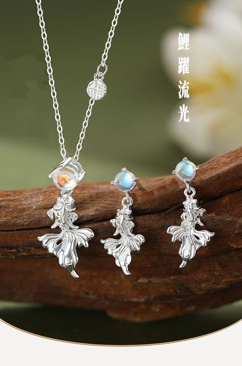 純銀鯉躍流光項錬耳釘套組 項錬 耳環 耳飾 S999足銀 不易過敏掉色 原創設計 小眾不撞款 新中式 顯白氣質 生日禮物