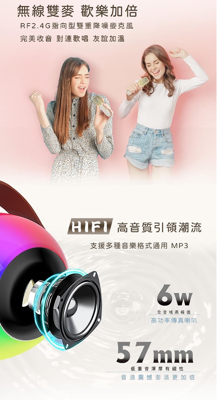 ◆ 附贈兩支藍牙指向性雙重降噪麥克風 雙Mic互連歡樂對唱