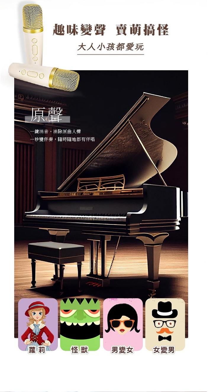 ◆ 麥克風特效:五種變聲麥克風 ( 原聲/ 男變女/ 女變男/ 蘿莉/ 怪獸)