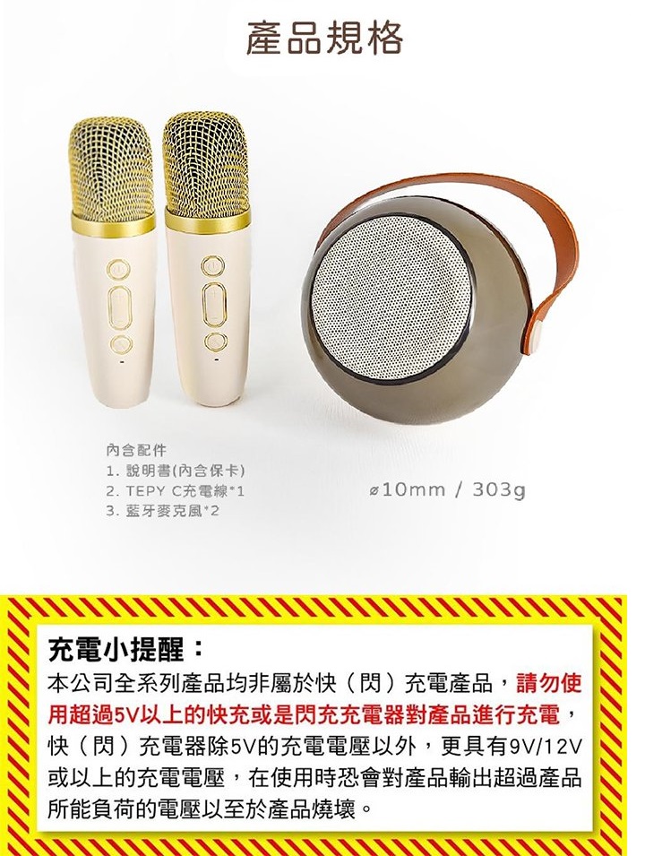 ◆ 電池:喇叭 18650 1800mAh 鋰電池 / 麥克風 14500 300mAh 鋰電池