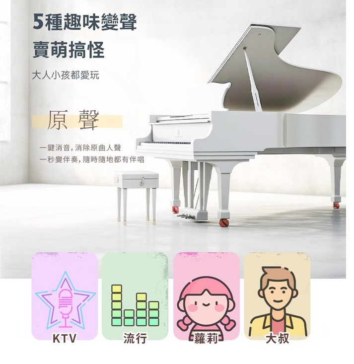 ◆ 五種變聲模式 ( KTV/ 流行/ 原音/ 蘿莉/ 大叔) 趣味變聲歡樂無限