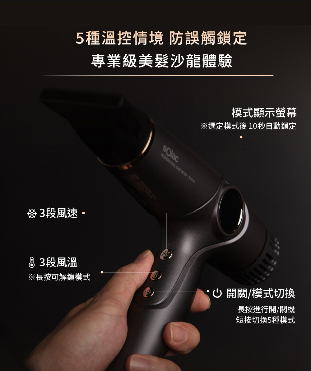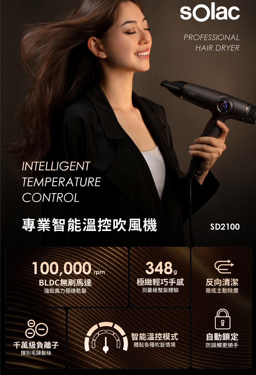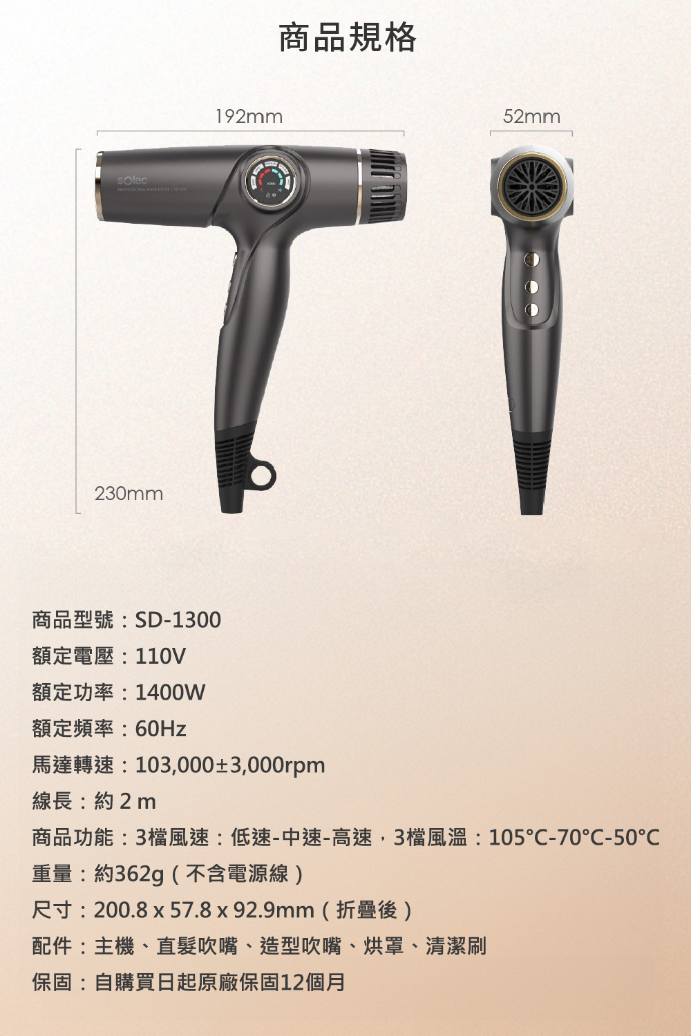 【SOLAC】SD-1300 智能中和離子專業吹風機